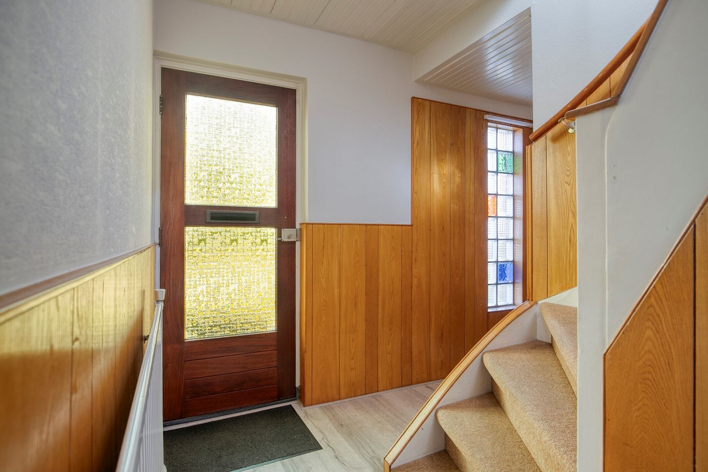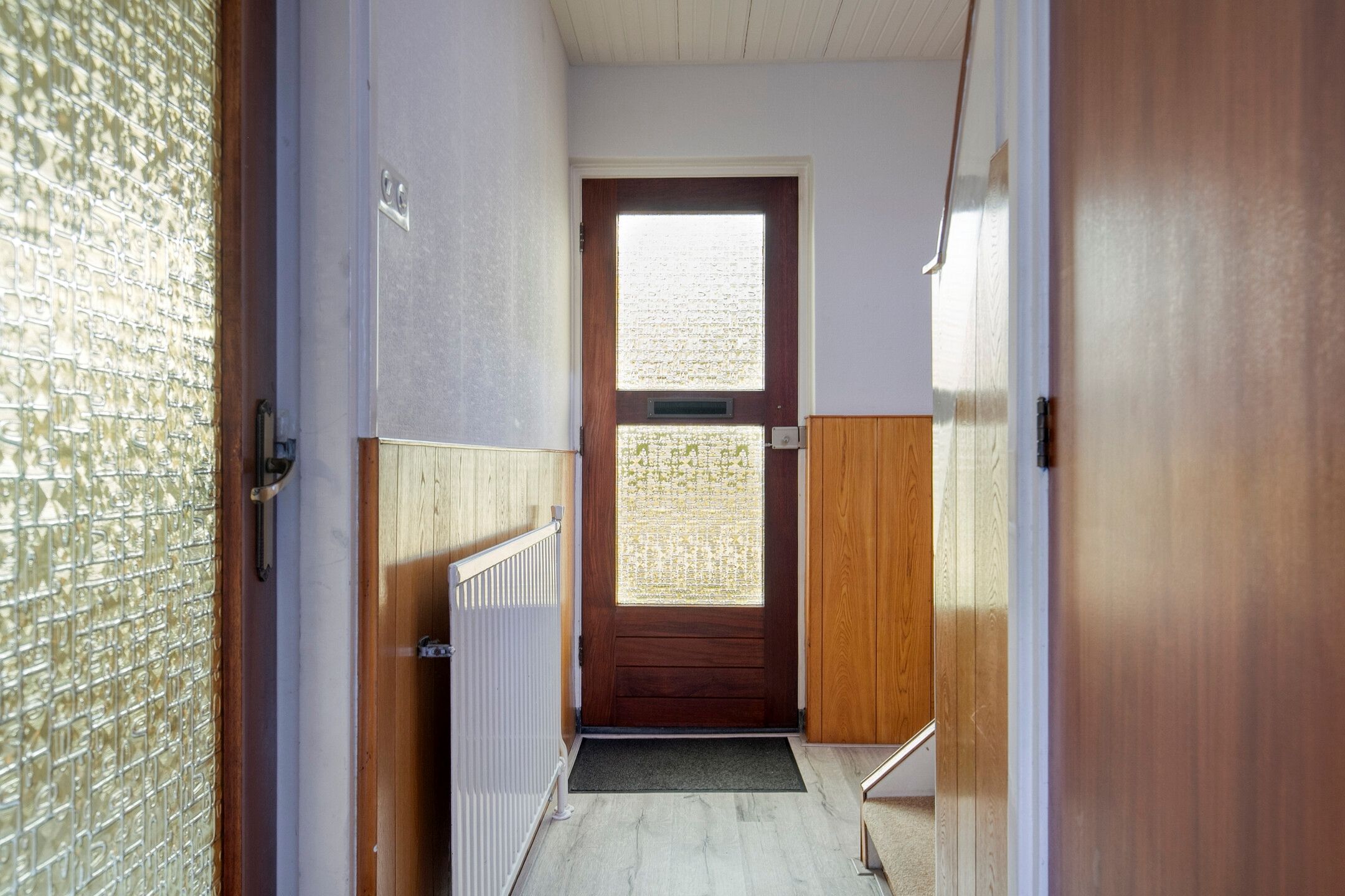 Je komt binnen via de entree met toegang tot het toilet, de trapopgang en een handige provisiekelder.