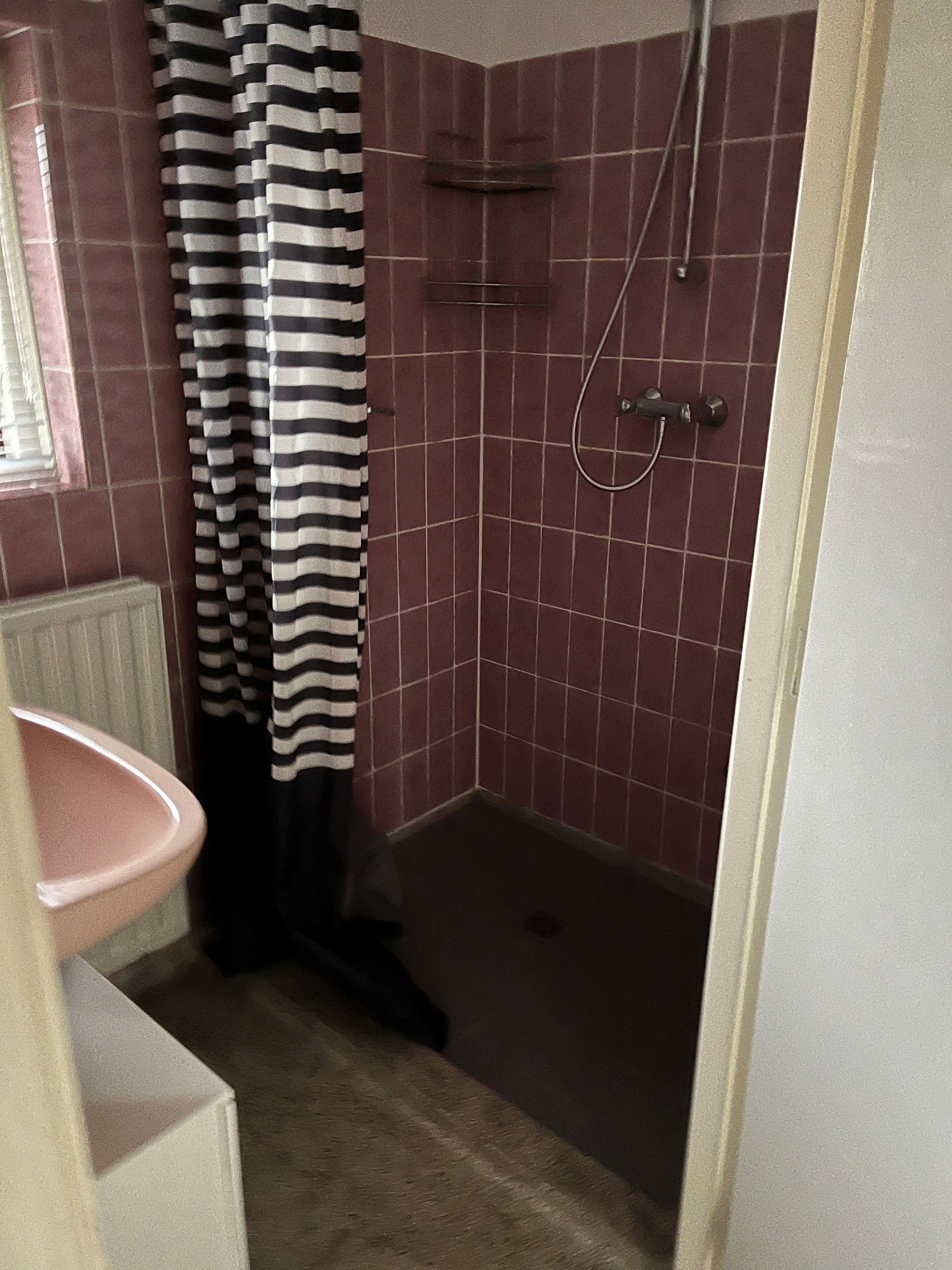Overloop, 3 slaapkamers waarvan 1 mat balkon, badkamer met douche en wastafel.
