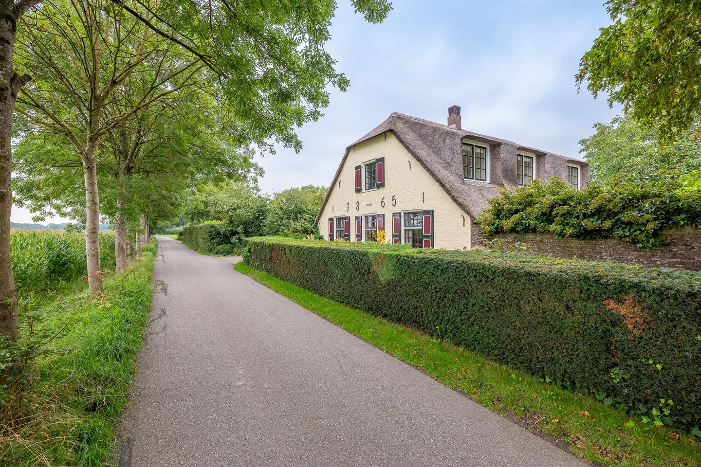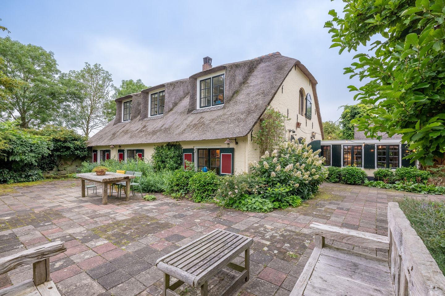 Deze prachtige volledig gemeubileerde vrijstaande landhuis-boerderij met rieten zadeldak dateert uit 1865, maar gerenoveerd en van alle moderne gemakken voorzien. Alle vensters zijn voorzien van luiken in de kleur van het kasteel Sterkenburg.