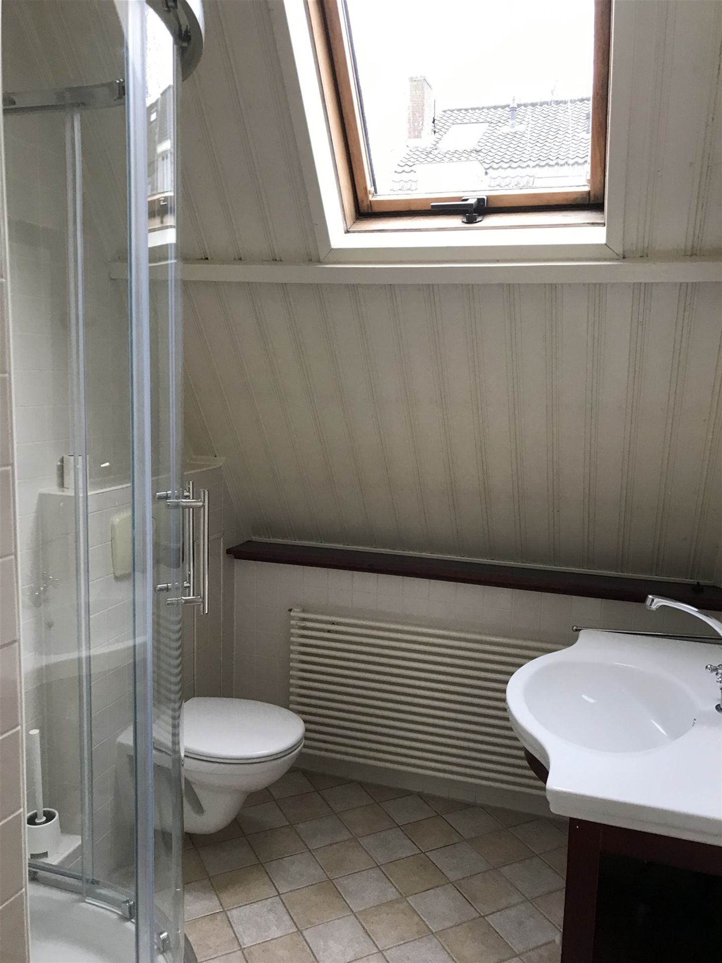 1e verdieping, overloop, slaapkamer voorzijde ca.14m2, slaapkamer achterzijde ca 6,5m badkamer met douchecabine, 2e toilet en wastafel, dakraam;