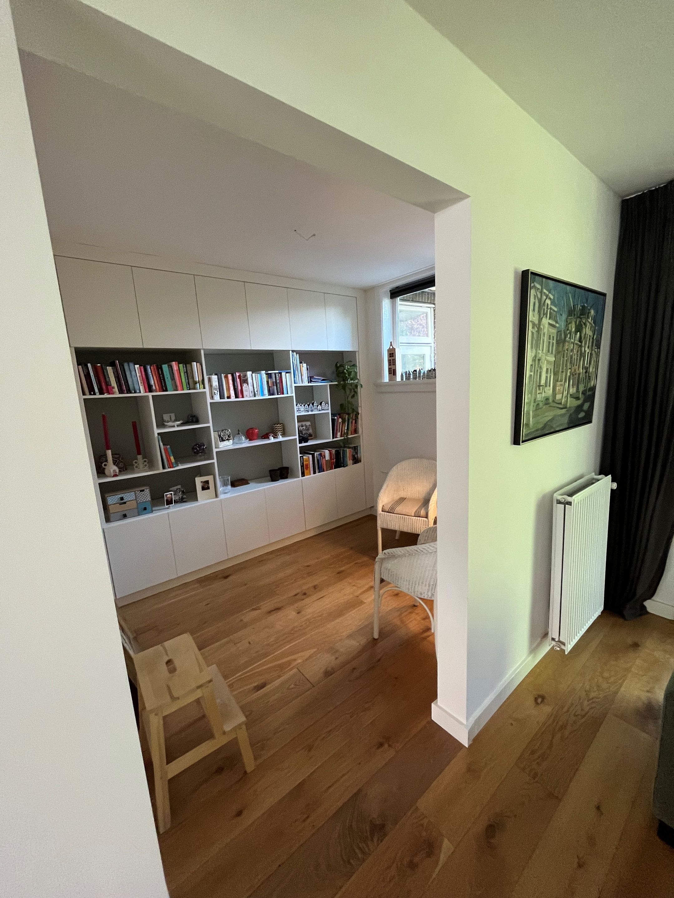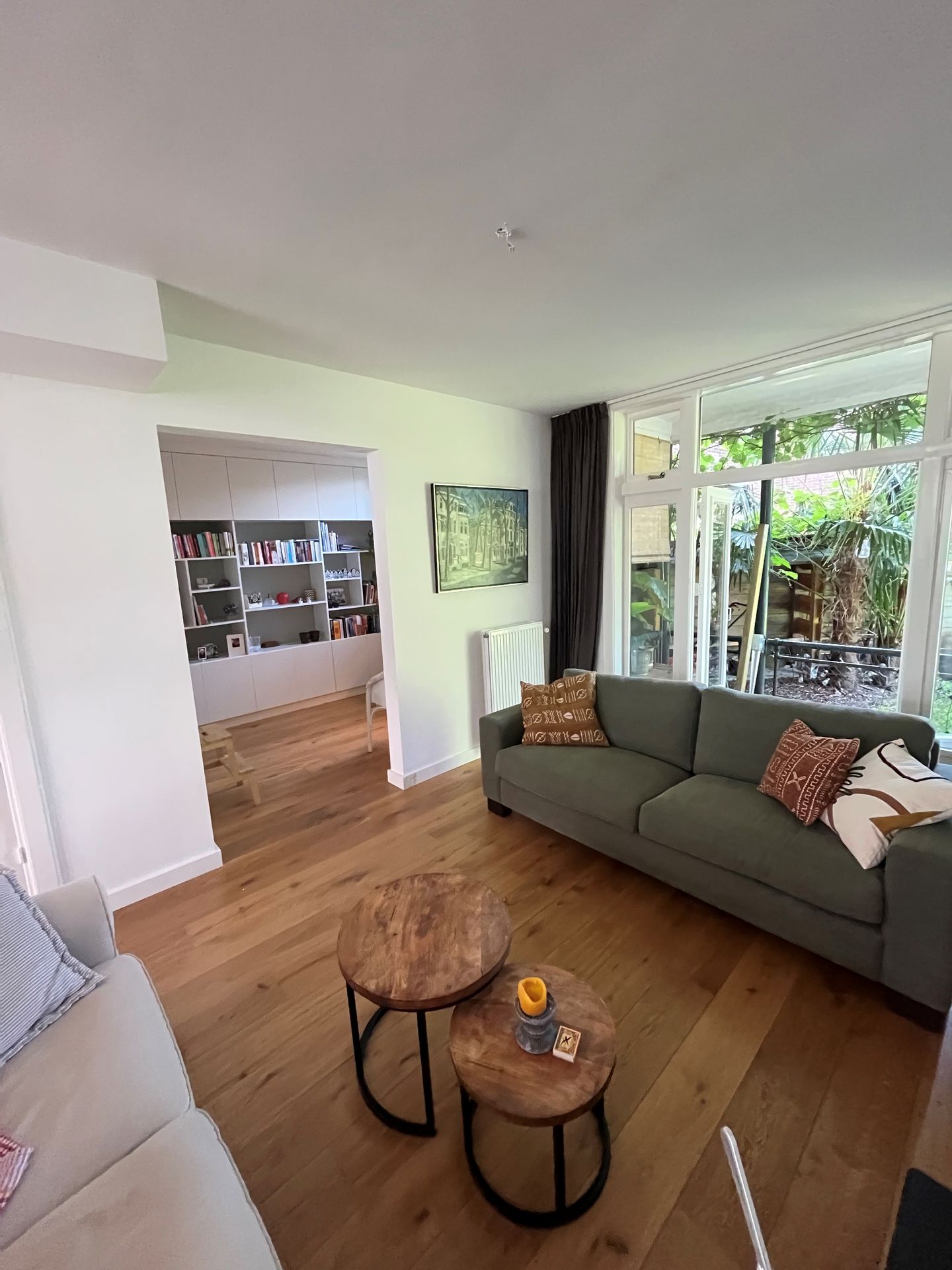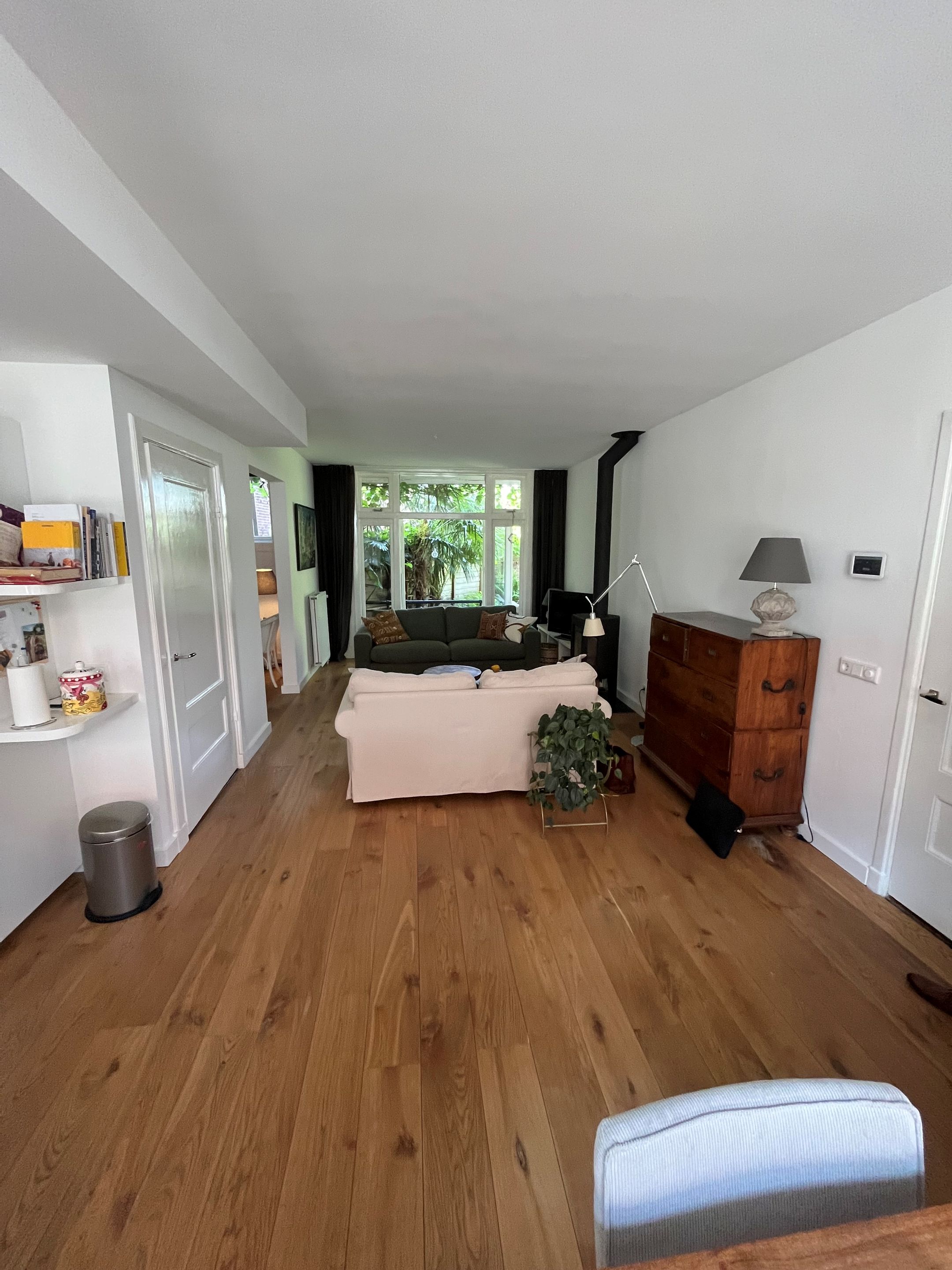 De gehele begane grond is voorzien van een massief houten vloer.