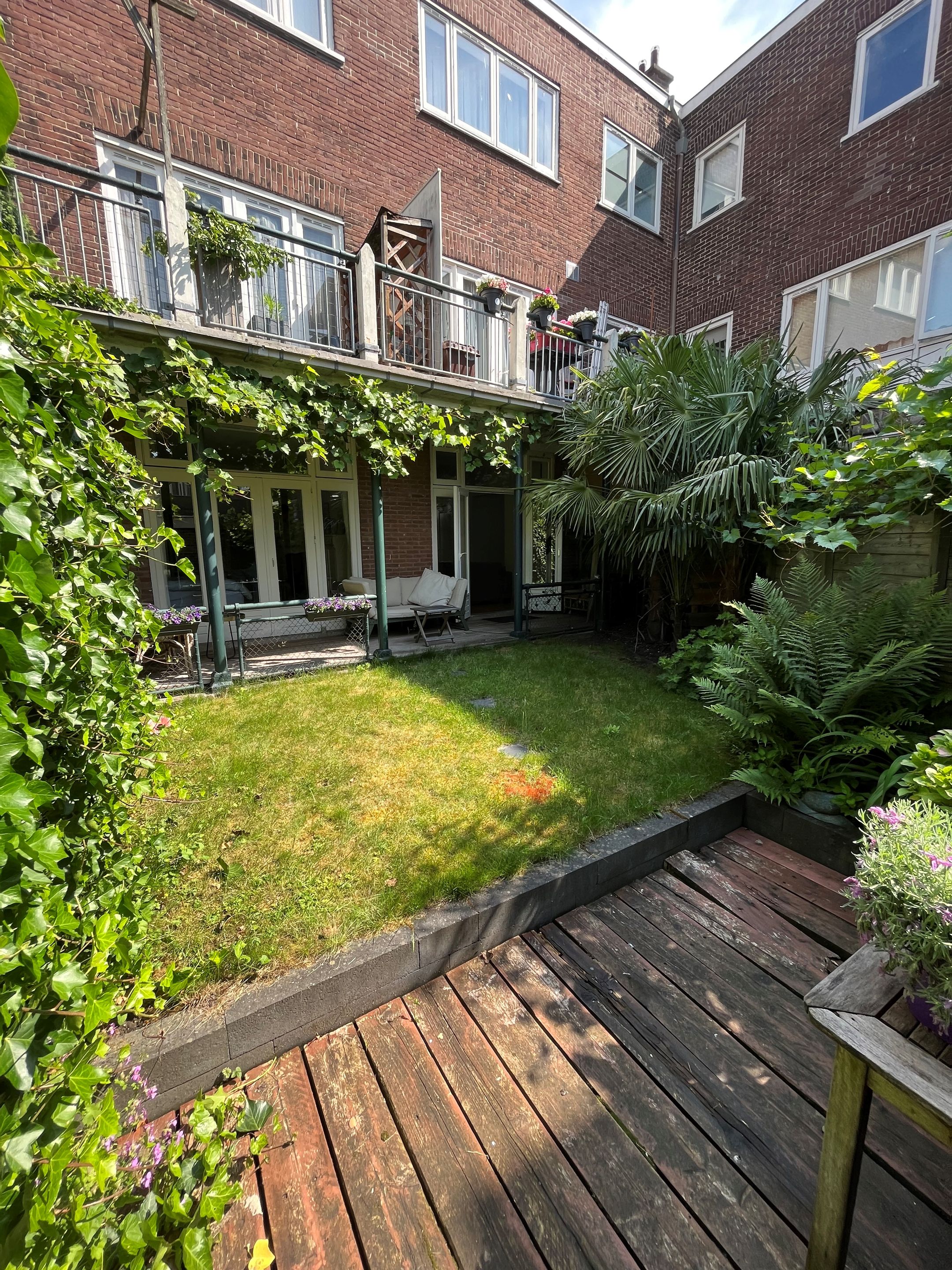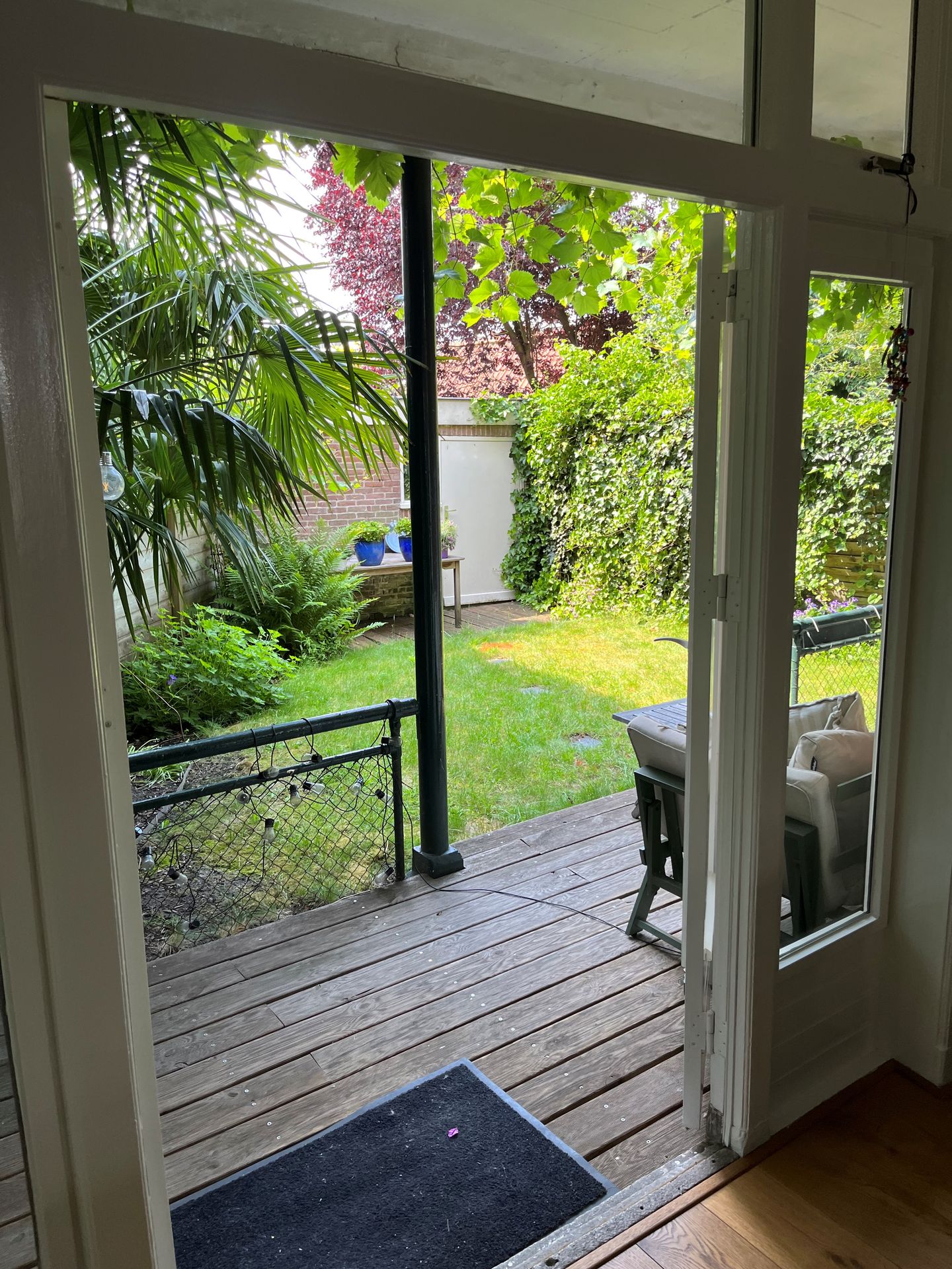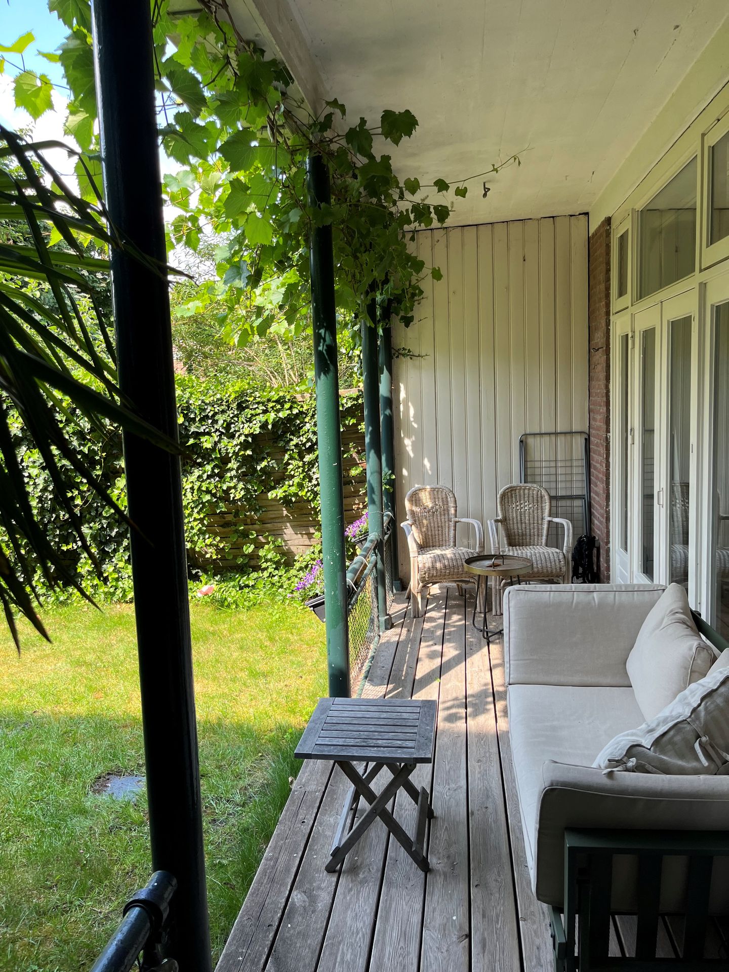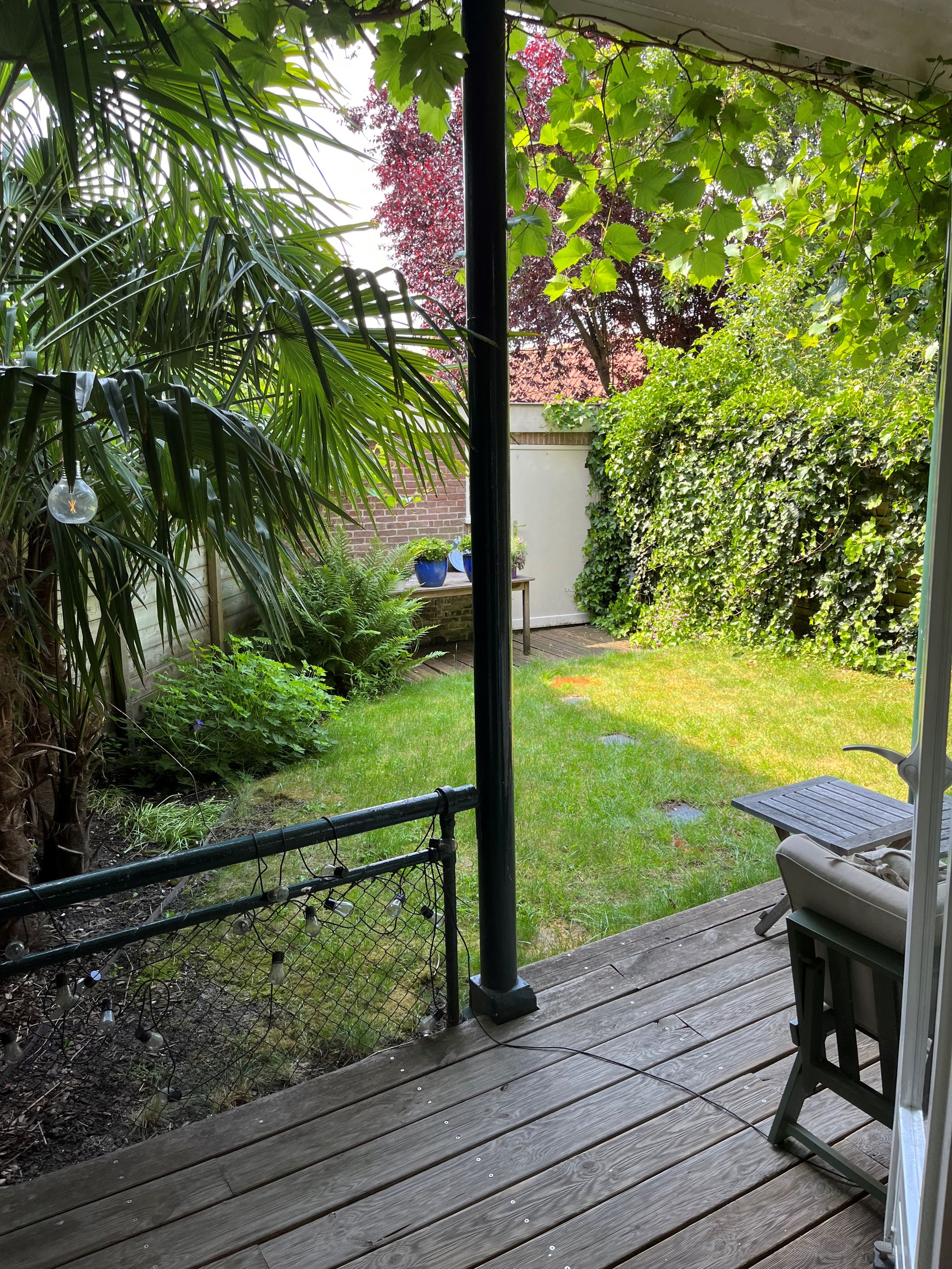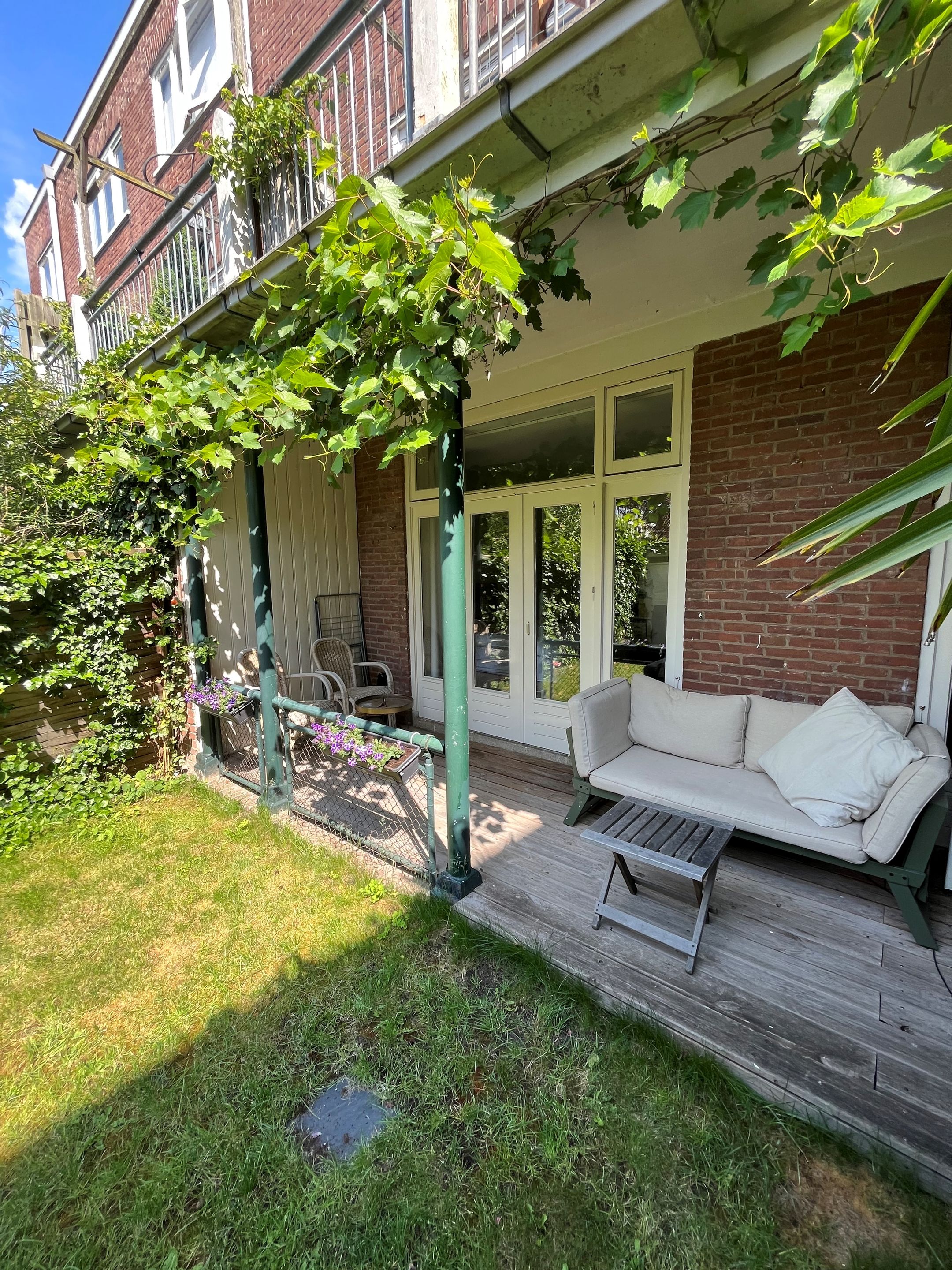 De woning beschikt aan de achterzijde van de woonkamer over openslaande deuren naar de heerlijke besloten en zonnige achtertuin op het zuiden met veranda, waar het al snel in het voorjaarszonnetje maar ook in het najaar heerlijk genieten is !