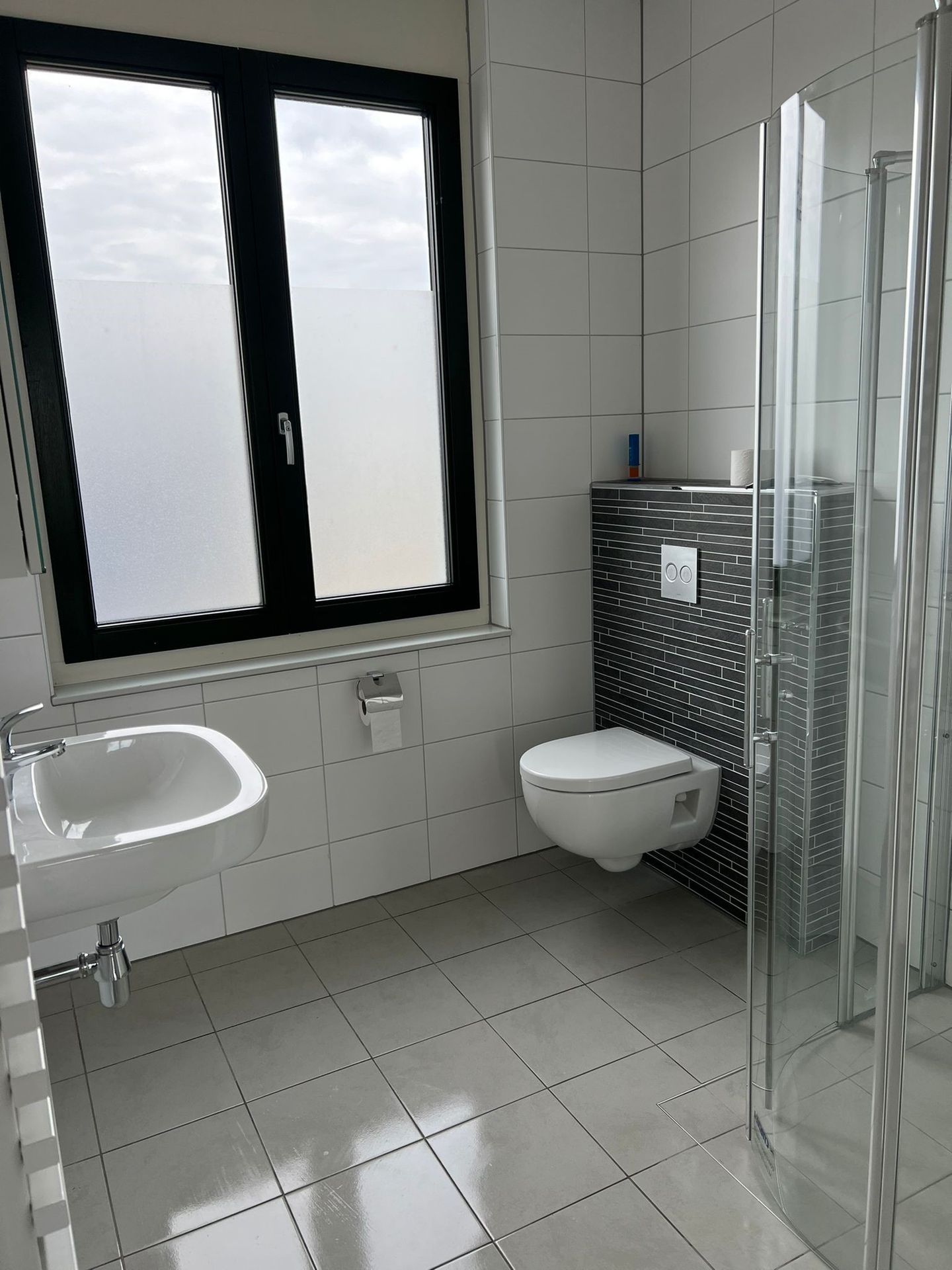 Overloop met 3 slaapkamers, badkamer met douchecabine, wastafel en tweede toilet;