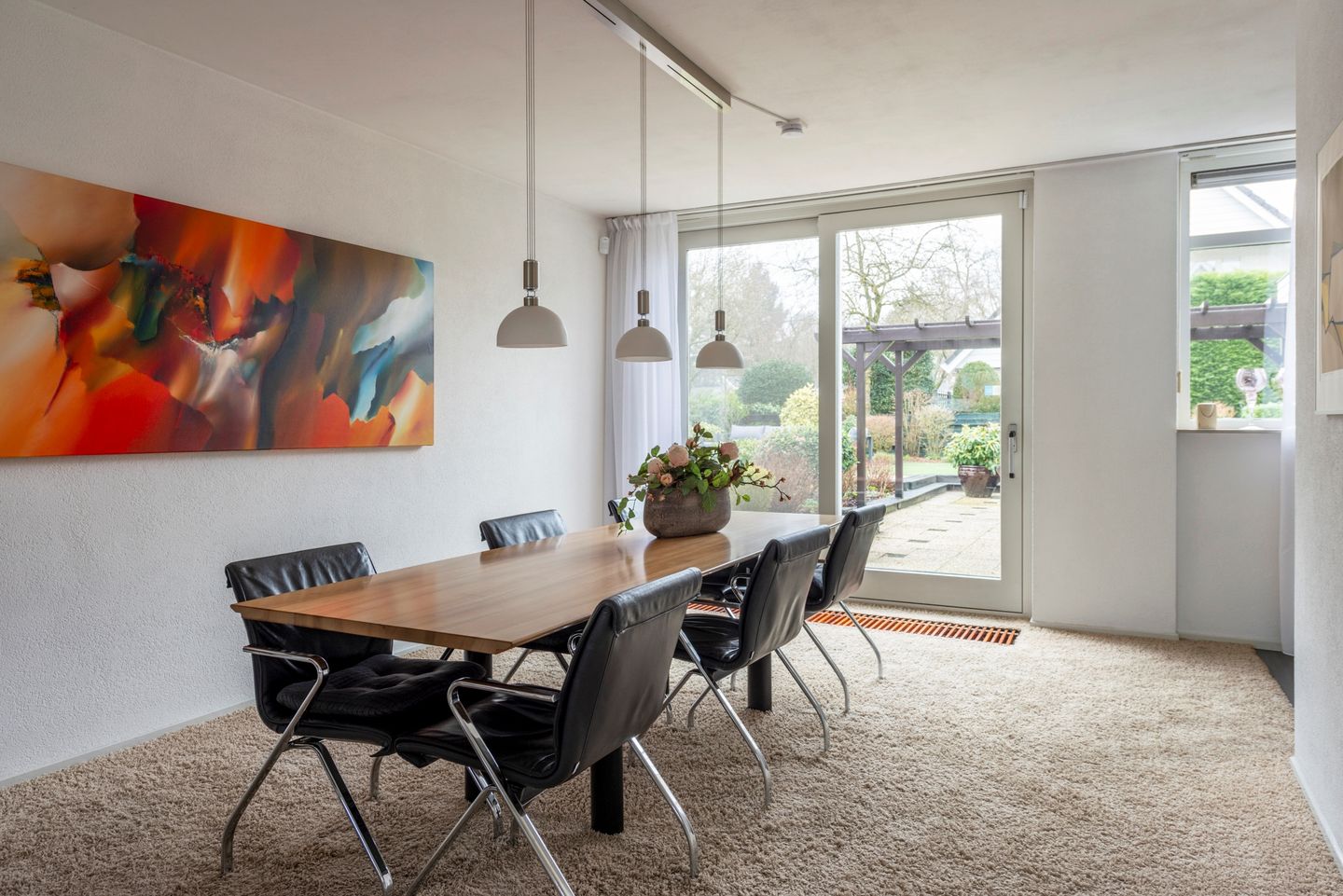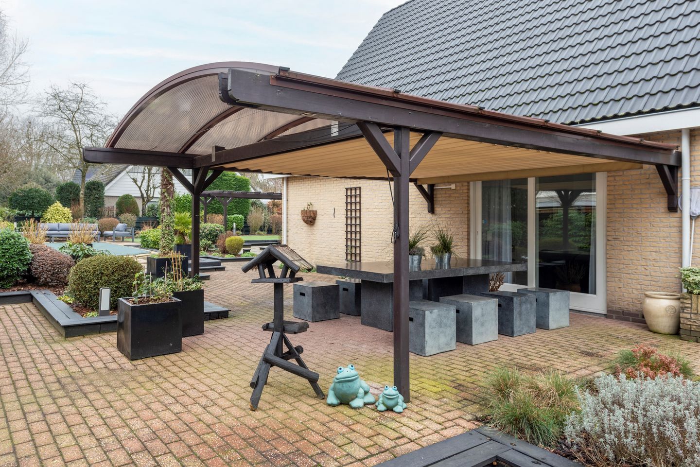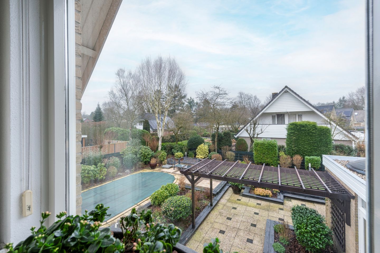 RIANTE VRIJSTAANDE VILLA MIDDENIN GROENE WOONOMGEVING Bent u op zoek naar een fraaie en zeer goed onderhouden villa in het dorp Maarsbergen op de grens van de Utrechtse Heuvelrug, dan moet u zeker deze villa komen bezichtigen! De villa ligt op een ruime kavel van 843 m2, slechts aan een zijde geschakeld door de royale verlengde garage met lange oprit voor meerdere auto’s; heeft een prachtige tuin op het zuid-westen, waarin diverse fraaie beplanting en een automatische beregeningsinstallatie. De tuin is verder voorzien van diverse terrassen met verlichting, overkapping, zonwering, een grote vijverpartij en niet te vergeten een zwembad met verwarming voor heerlijke ontspanning.
