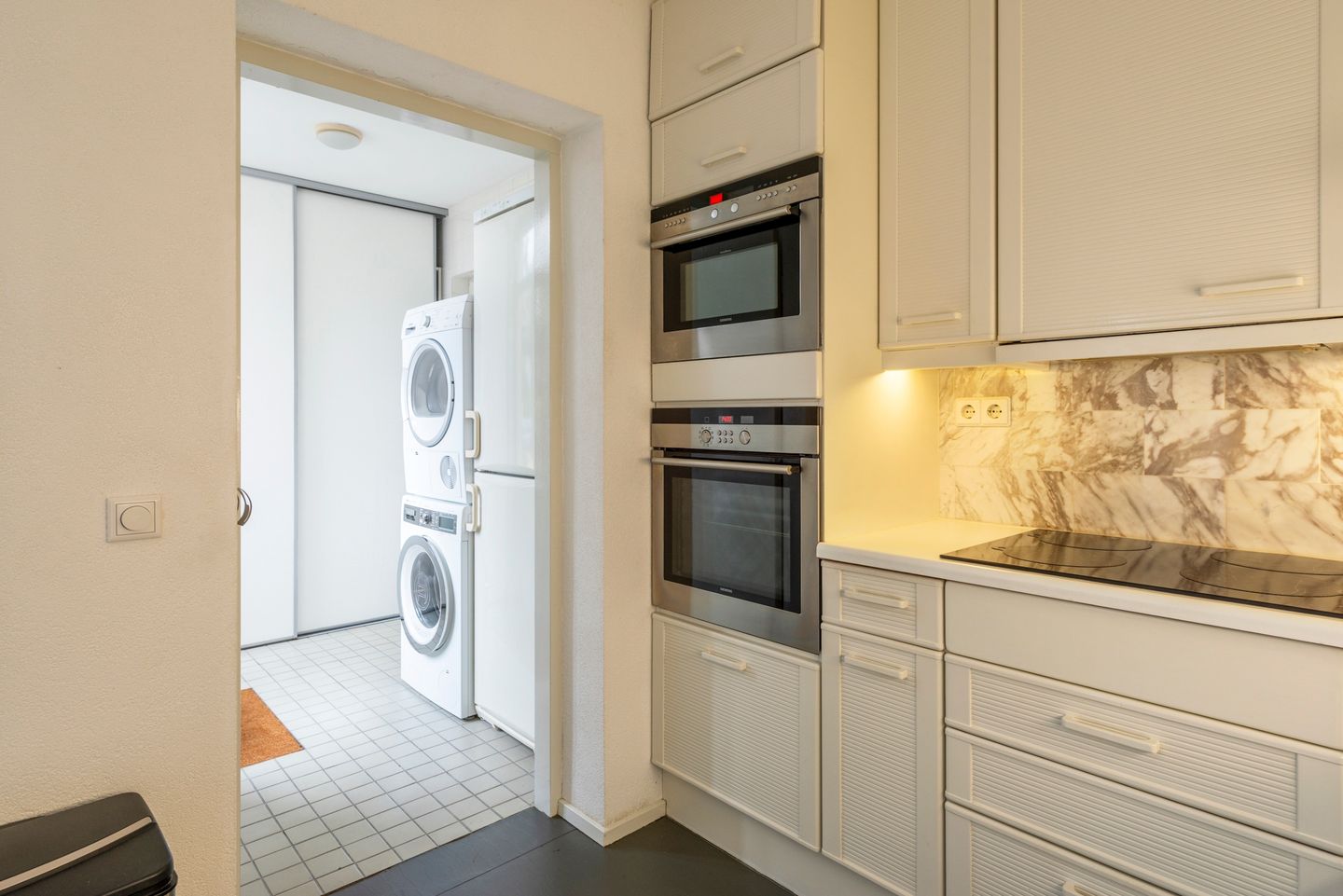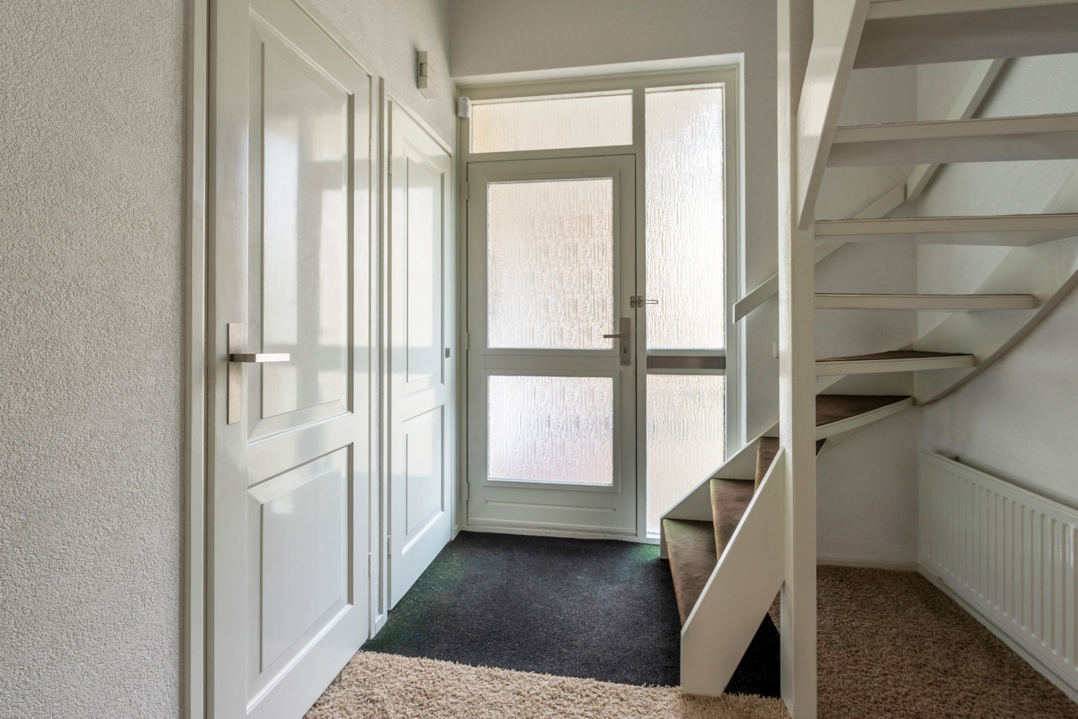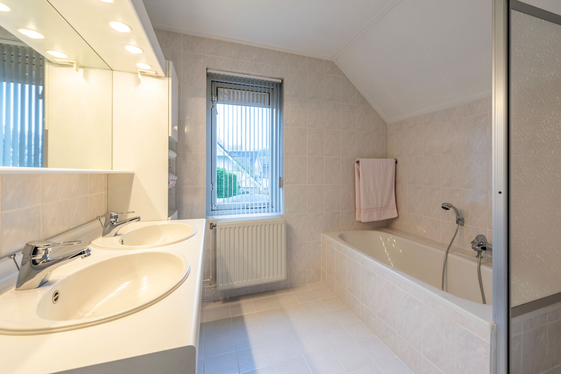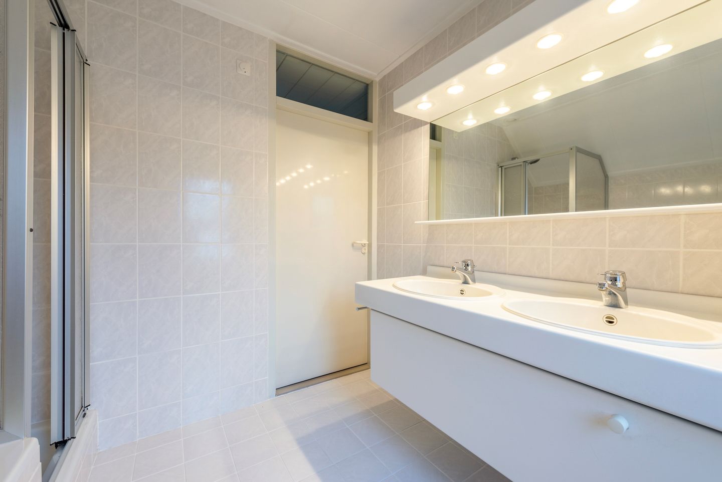 De eerste verdieping verbindt de overloop met twee slaapkamers (voorheen 3), hierdoor is voor de hoofdslaapkamer met balkon aan de voorzijde een riante ruimte gecreёerd met veel kastruimte. De tot aan plafond betegelde badkamer is voorzien van een douchecabine, ligbad, een wastafelmeubel en natuurlijk ventileren kan ook via het raam. Het tweede toilet is aanwezig in de separate toiletruimte op de overloop.