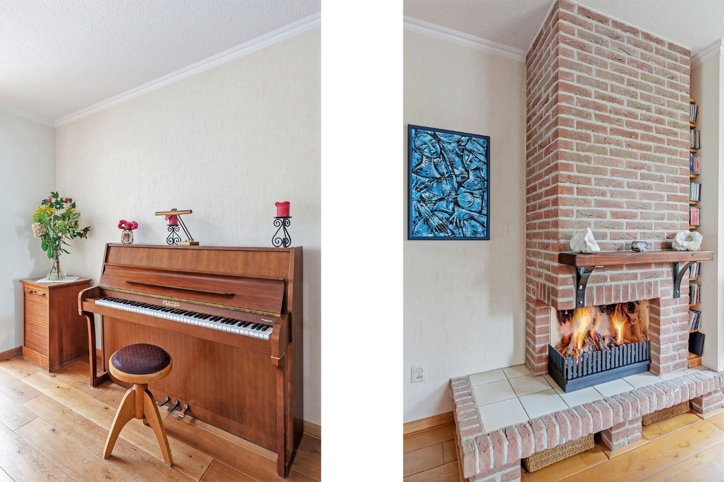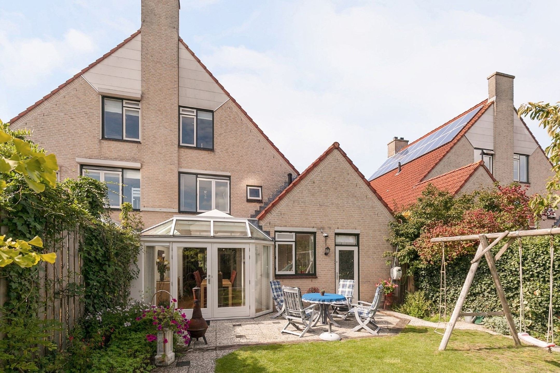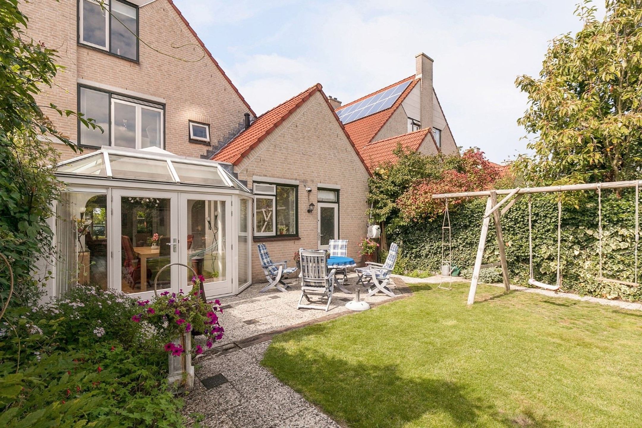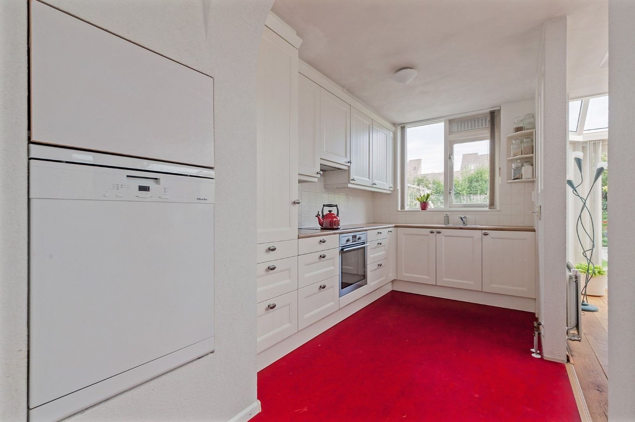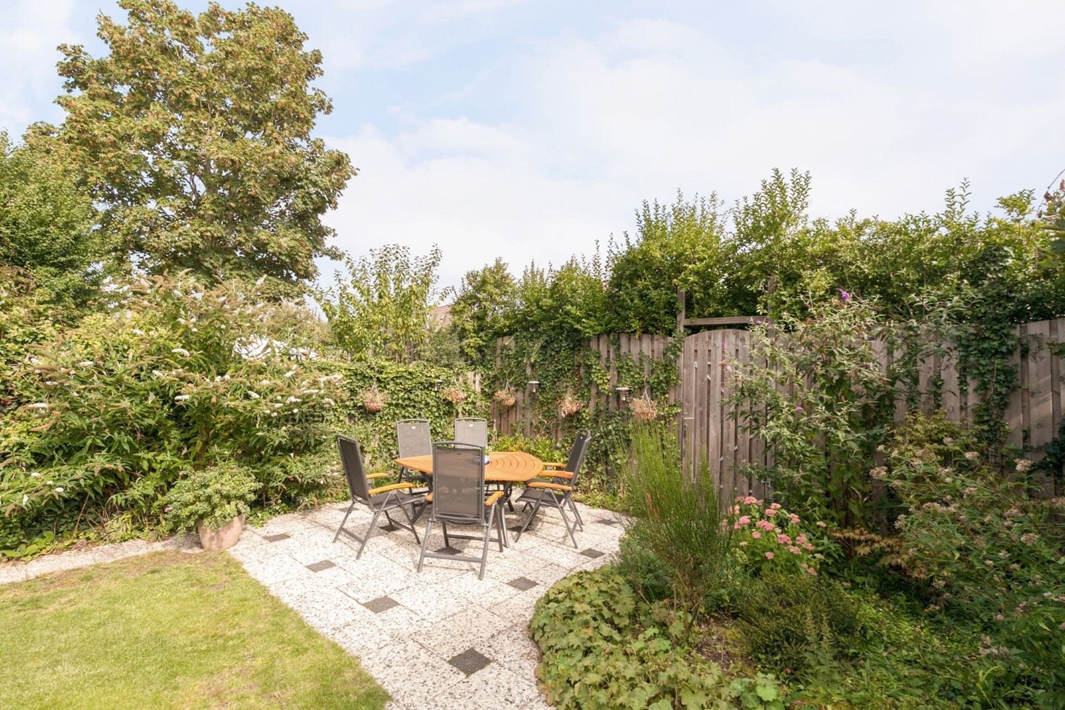 Entree, hal met garderobe, meterkast, toilet en trapopgang naar de 1ste verdieping, royaal aan de voor- en achterzijde uitgebouwde L-vormige woonkamer voorzien van breed massief Frans eiken parket met zeer lichte serre voorzien van schuine dakramen en grote, elektrisch te openen lichtkoepel, openslaande deuren naar de zonnige achtertuin met volop privacy, sfeervolle gasgestookte open haard, open keuken met inbouwapparatuur w.o. elektrische grill-bakoven, inductiekookplaat + afzuigkap, vaatwasser op werkhoogte, ruime koelkast, close-in boiler). Via berging toegang tot de garage met vliering op stahoogte (totaal 14 m2) en hoog plafond, aansluiting voor vriezer, wasmachine en energiezuinige Miele gas-wasdroger, 2e toegang naar tuin met 2 terrassen en achterom.