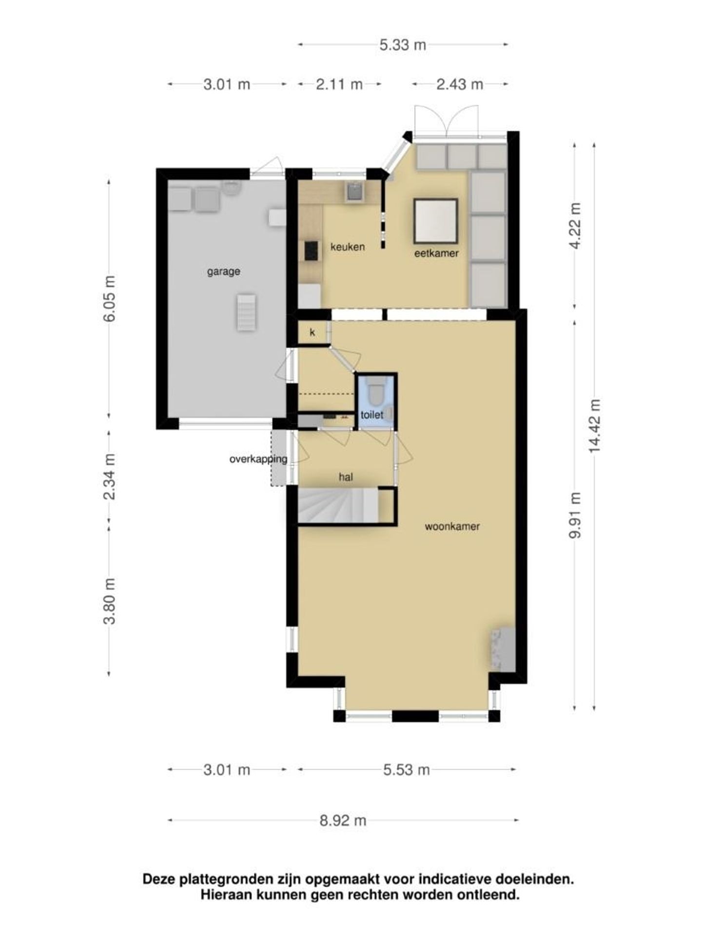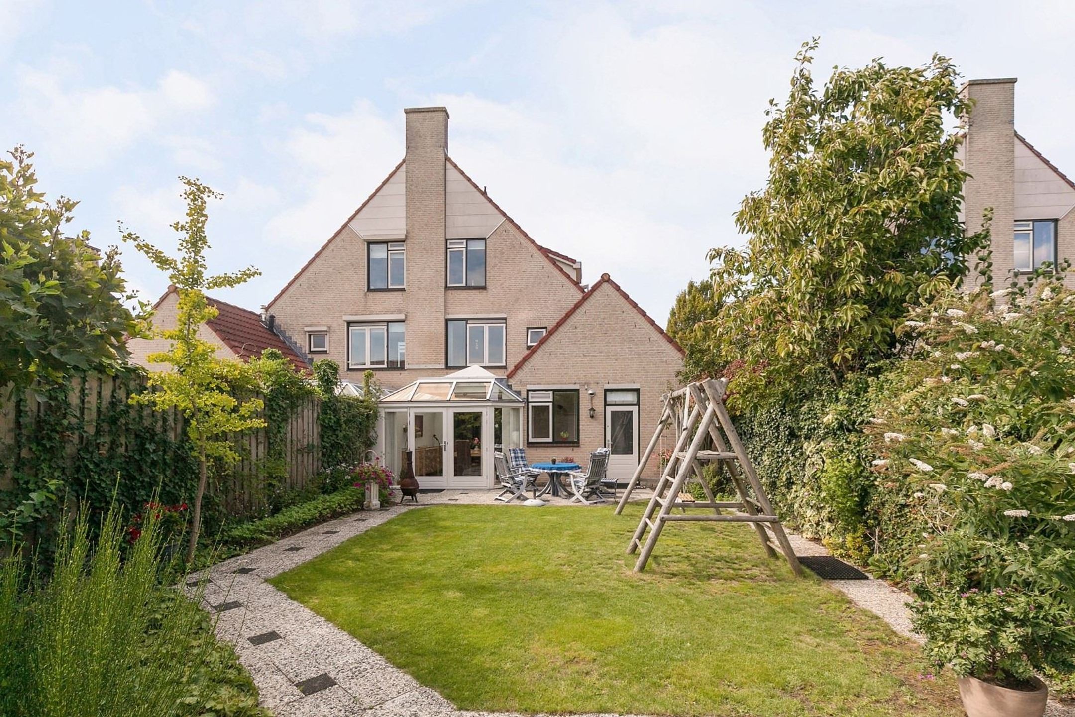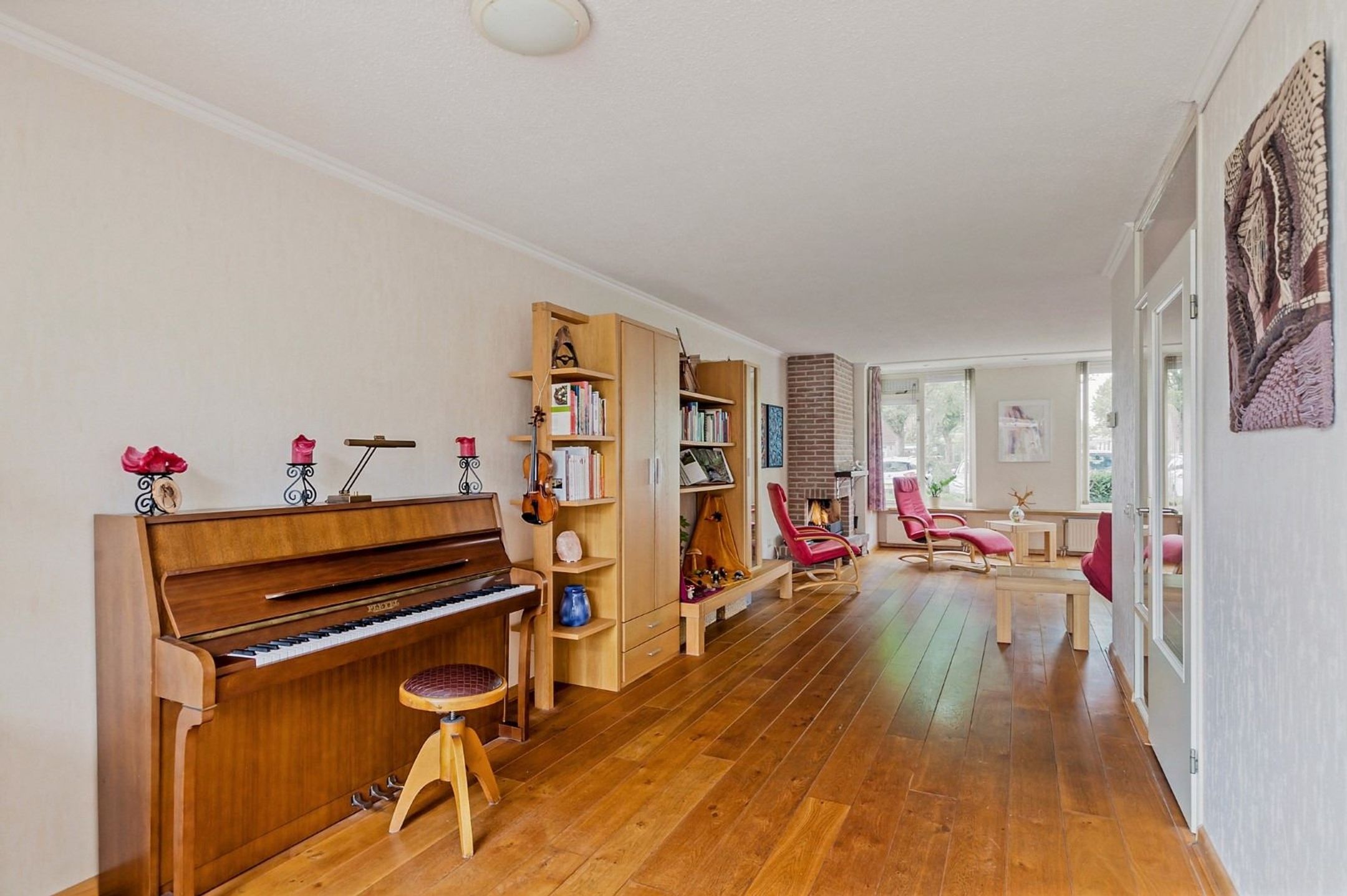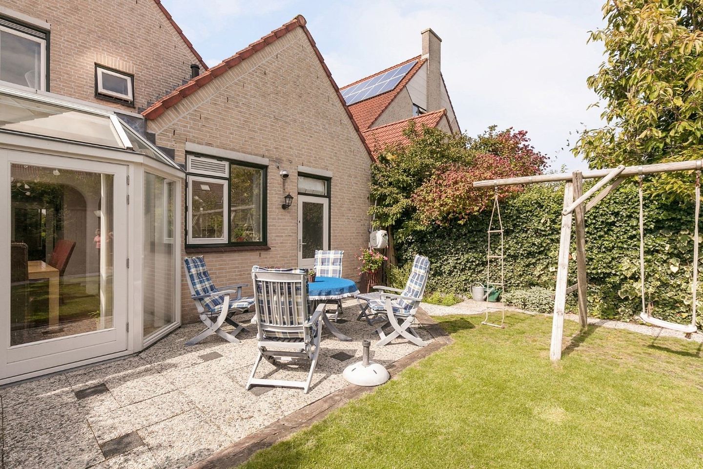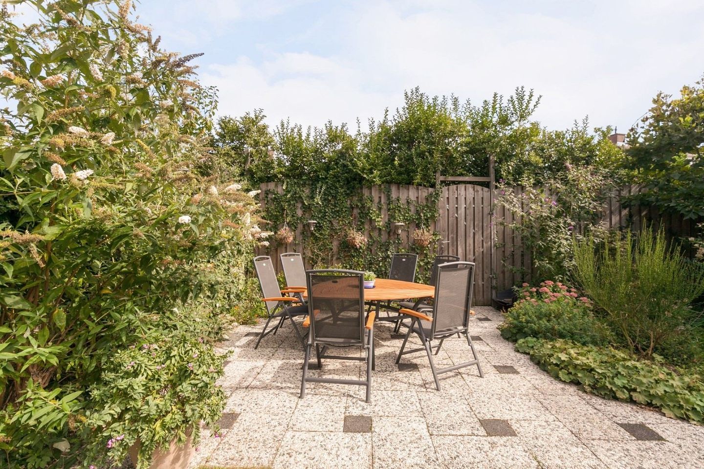 Entree, hal met garderobe, meterkast, toilet en trapopgang naar de 1ste verdieping, royaal aan de voor- en achterzijde uitgebouwde L-vormige woonkamer voorzien van breed massief Frans eiken parket met zeer lichte serre voorzien van schuine dakramen en grote, elektrisch te openen lichtkoepel, openslaande deuren naar de zonnige achtertuin met volop privacy, sfeervolle gasgestookte open haard, open keuken met inbouwapparatuur w.o. elektrische grill-bakoven, inductiekookplaat + afzuigkap, vaatwasser op werkhoogte, ruime koelkast, close-in boiler). Via berging toegang tot de garage met vliering op stahoogte (totaal 14 m2) en hoog plafond, aansluiting voor vriezer, wasmachine en energiezuinige Miele gas-wasdroger, 2e toegang naar tuin met 2 terrassen en achterom.