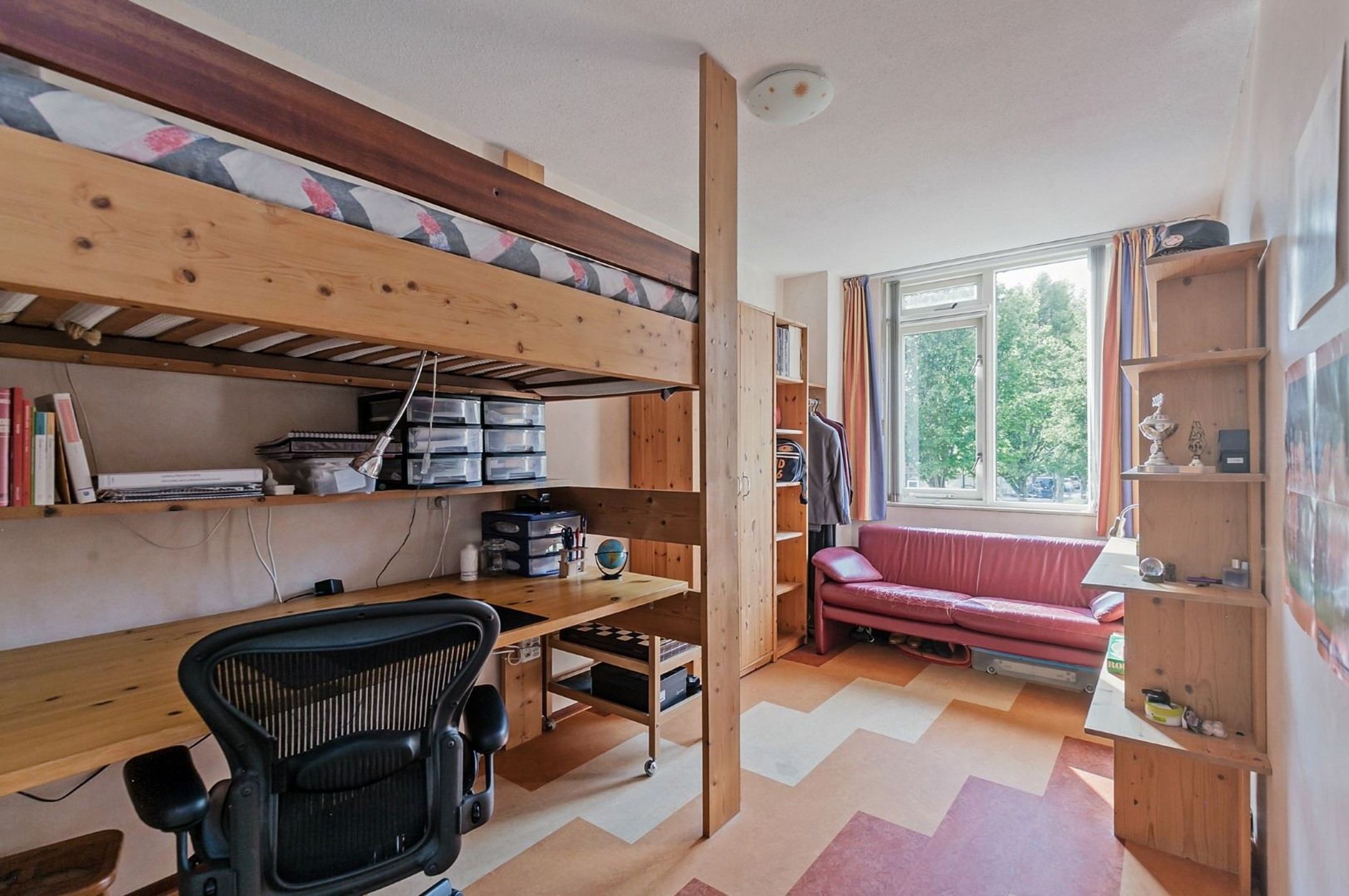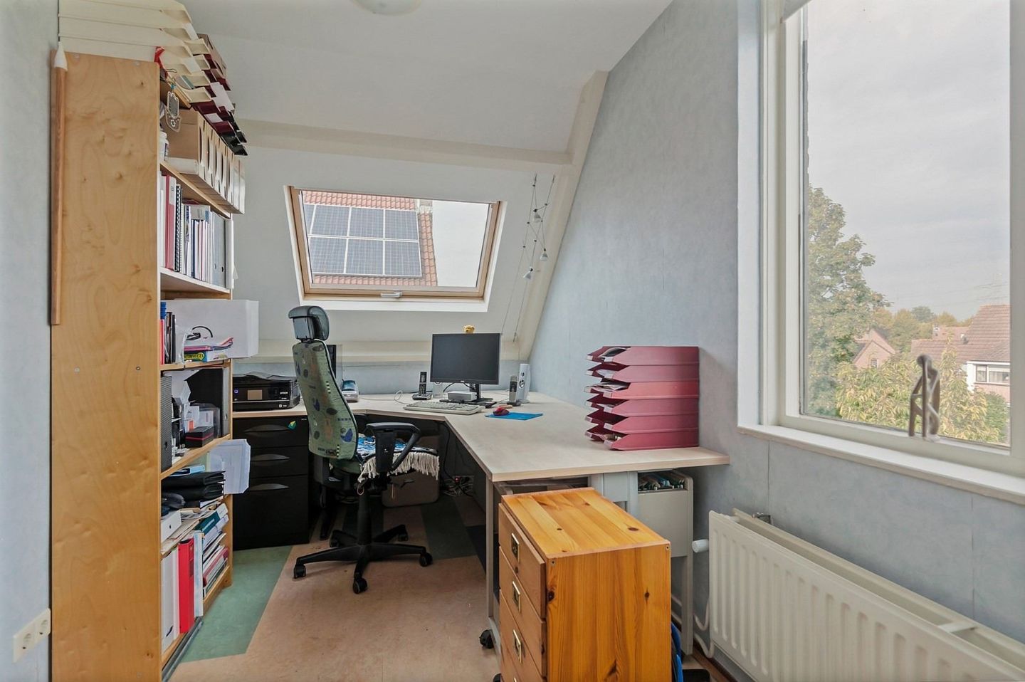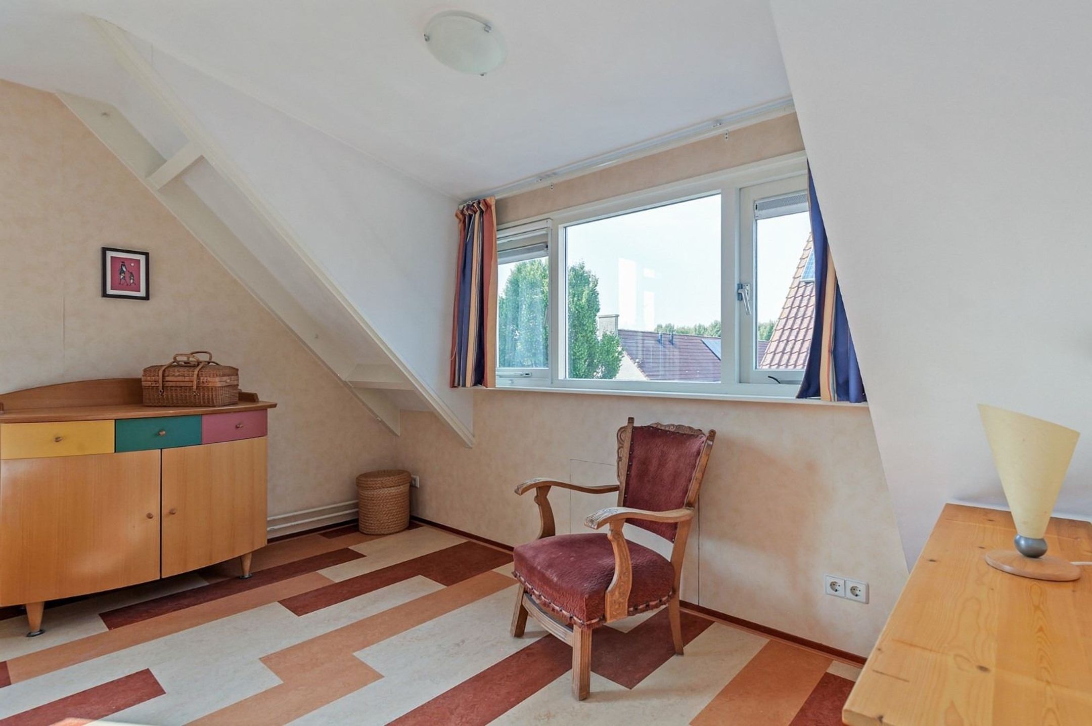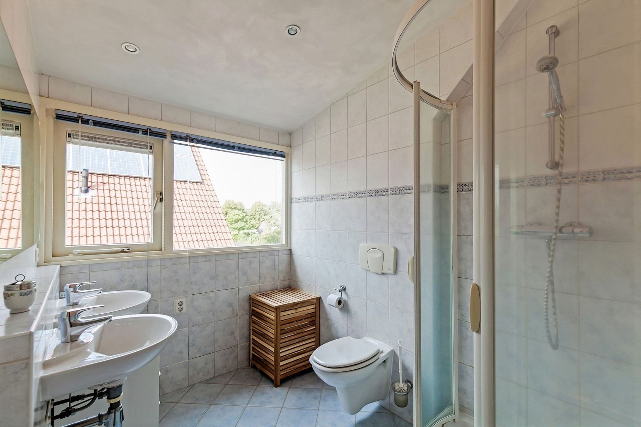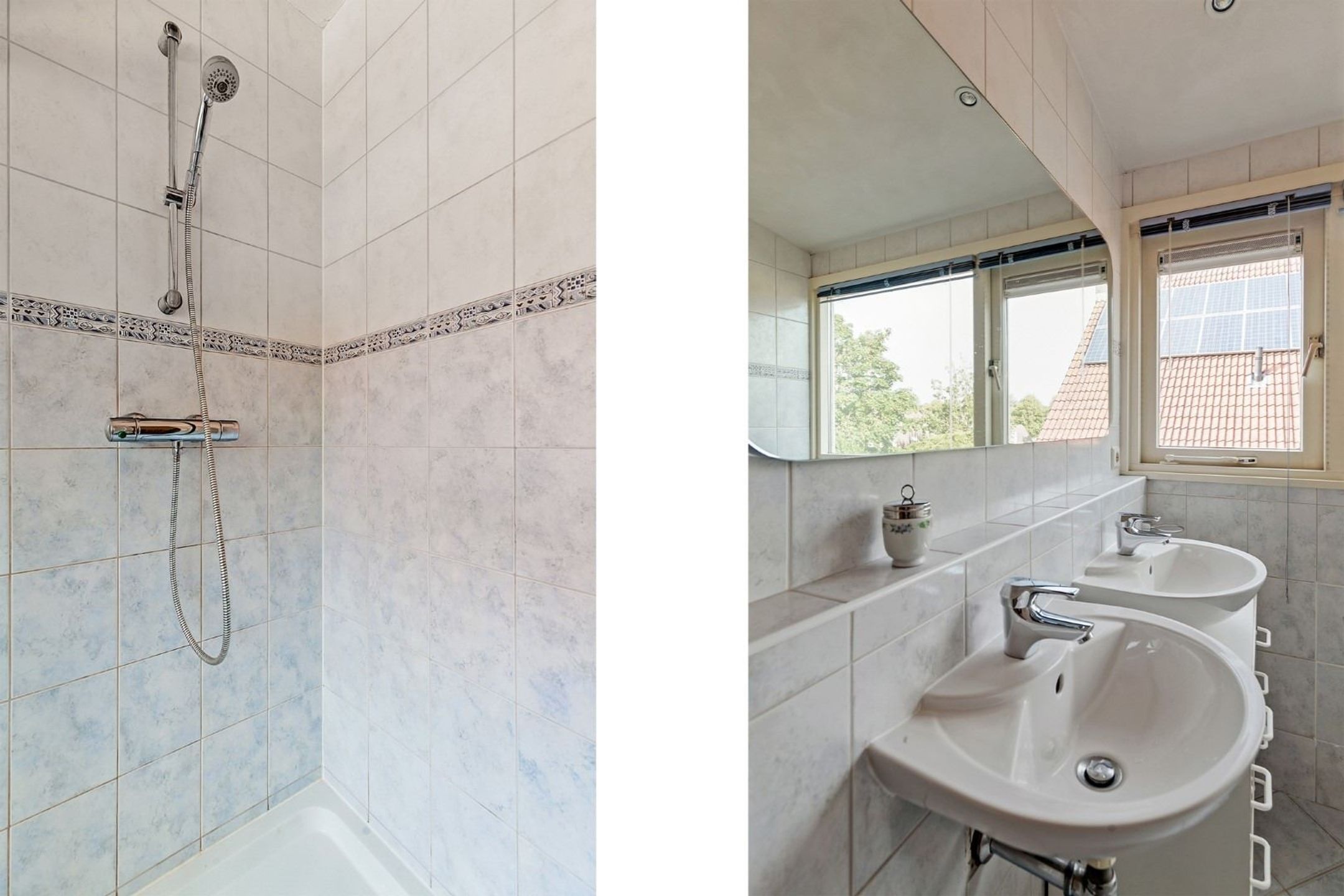 Overloop met toegang tot royale (ouder-)slaapkamer aan de voorzijde met grote dakkapel, een lichte 2e badkamer met dakkapel, waarin douche, dubbele wastafel en toilet, een praktische inloopkast, een werk/slaapkamer aan de achterzijde met extra VELUX-dakraam en vlizotrap naar de vliering. Achter schotten op beide kamers is bergruimte. Overloop en kamers voorzien van marmoleum.
