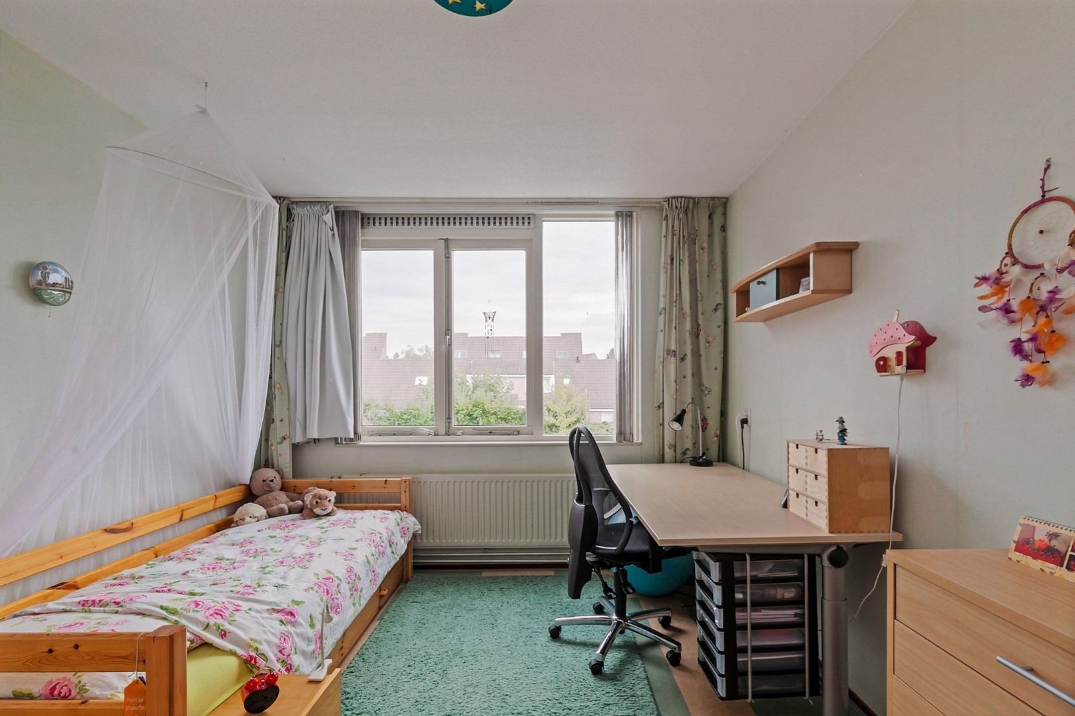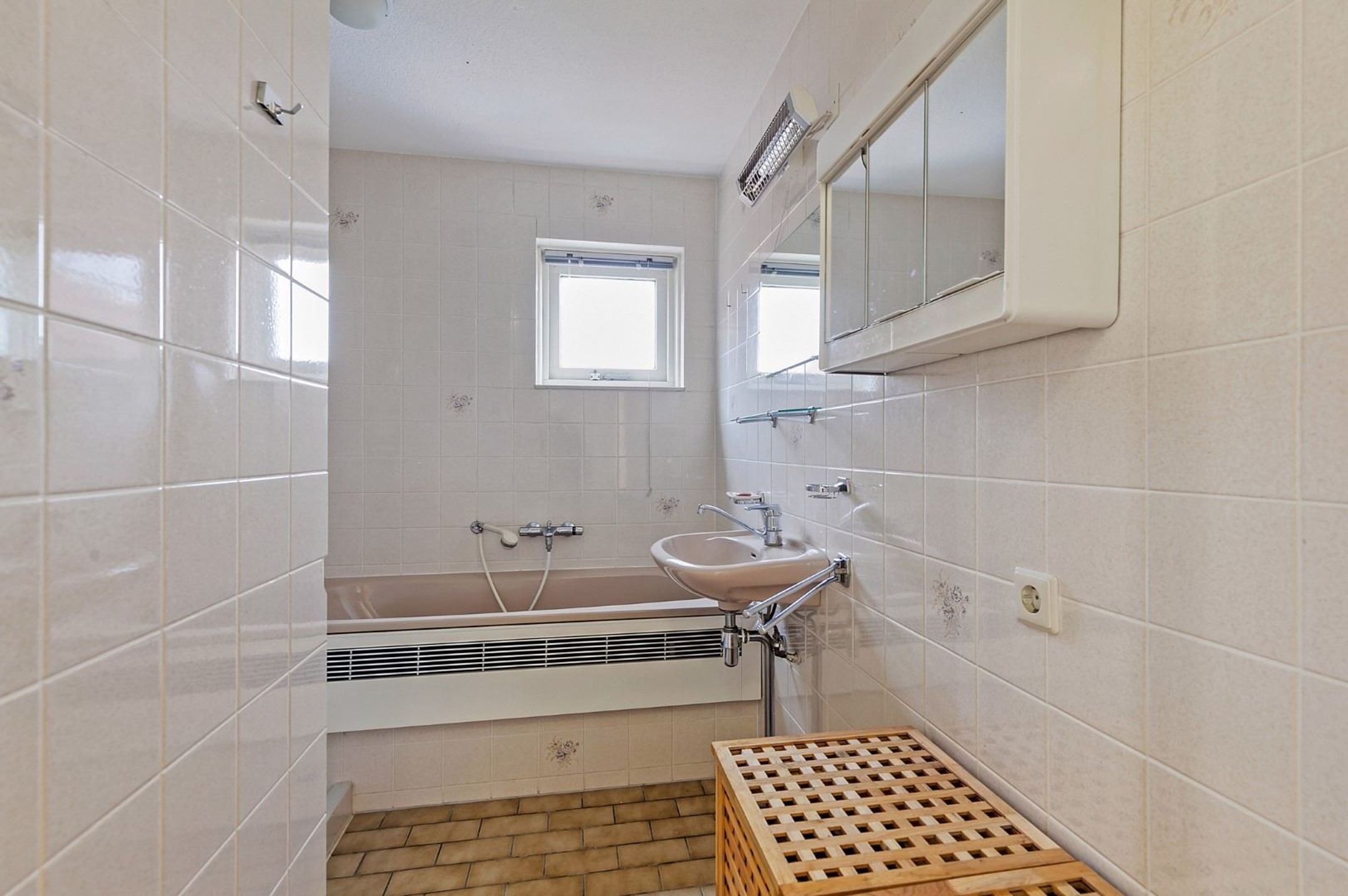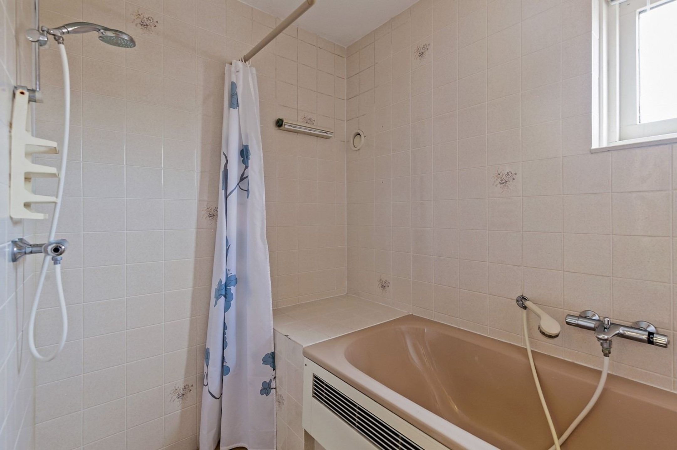 Lichte overloop met grote raampartij, 3 ruime slaapkamers. Badkamer met ligbad, douche en wastafel, separaat toilet. Overloop en kamers voorzien van marmoleum. Vaste trap naar 2e verdieping.