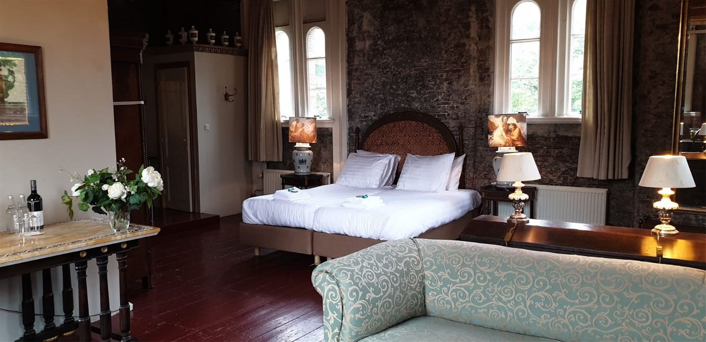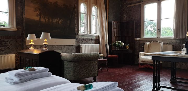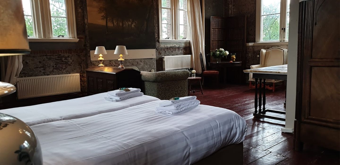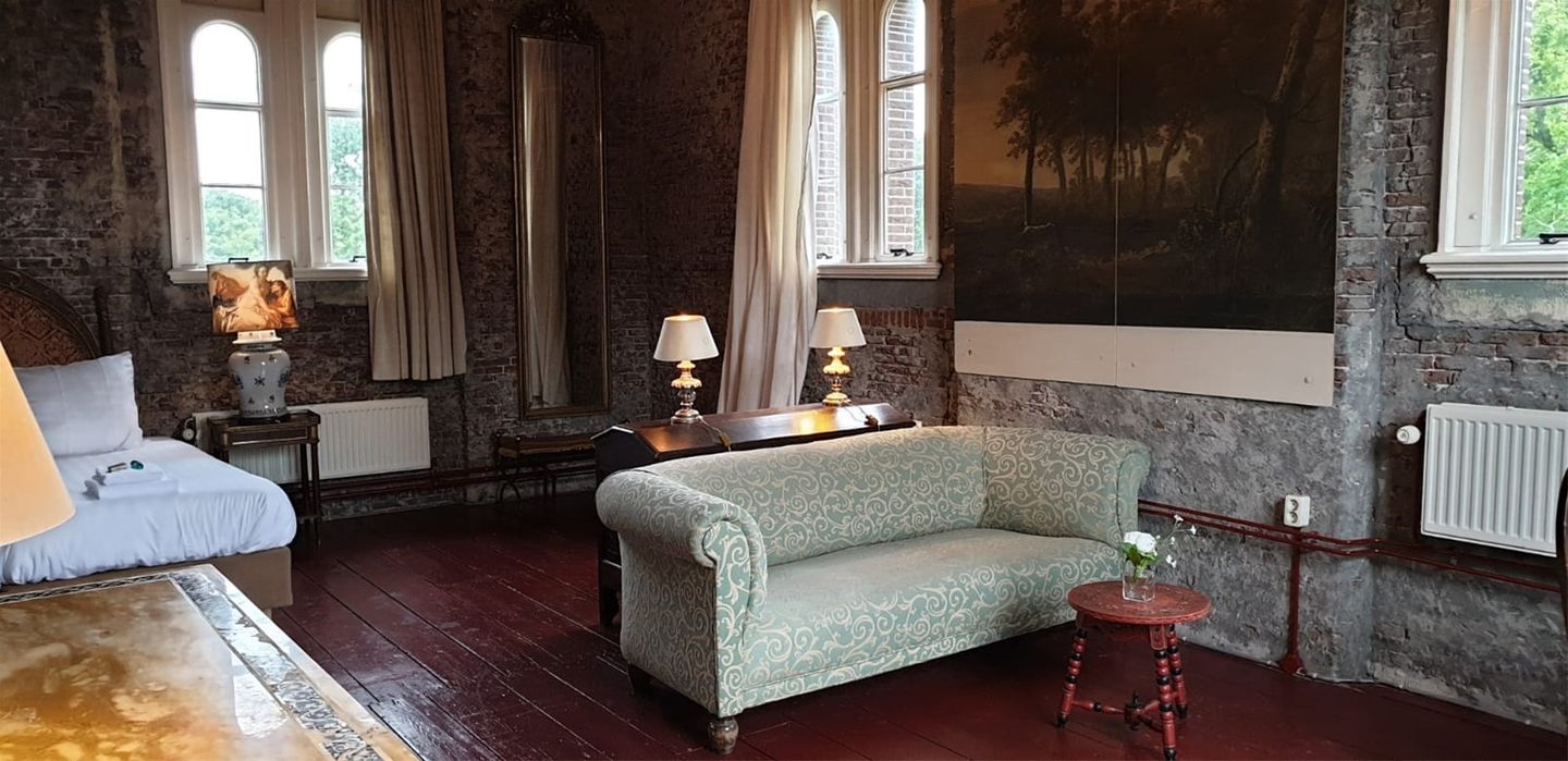 Op dit prachtig historisch landgoed met veel groen en waterpartijen TE HUUR een gemeubileerde studio in de vierkante toren, rustig gelegen in het buitengebied van Driebergen-Rijsenburg omgeven door een terrein van enkele hectare onder meer bestaande uit: vijver- en waterpartijen, bomenpartijen, tuin, erf en oprijlanen compleet met automatische toegangspoort.