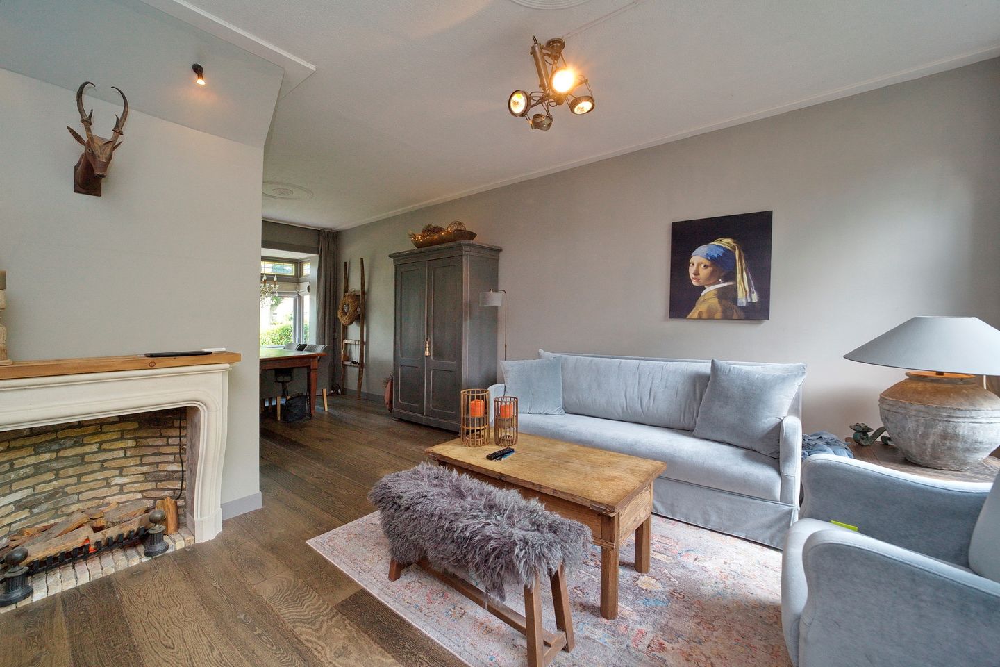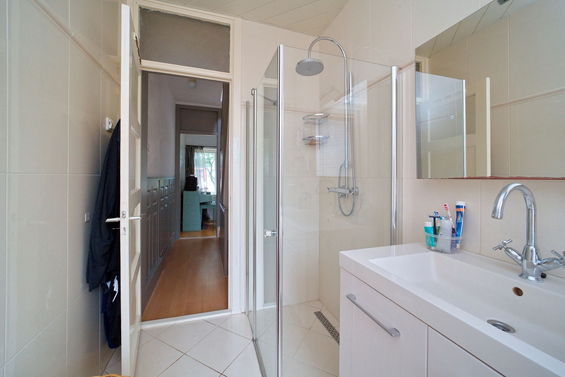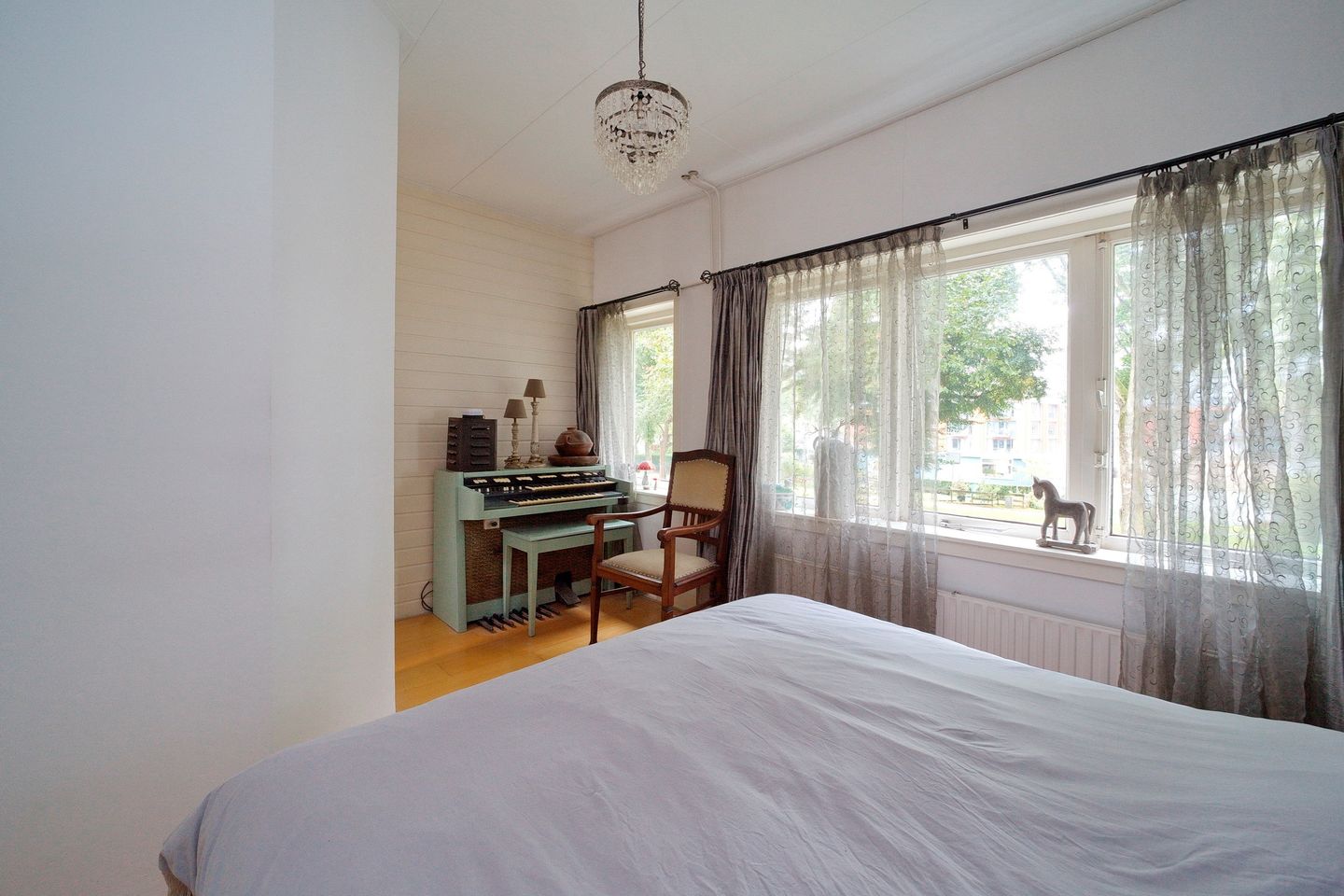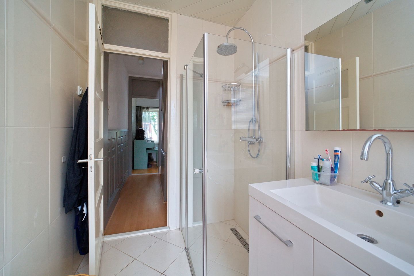 Begane grond: Entree/hal met originele granietvloer, deur met glas-in-lood raam en toegang naar de woonkamer met fraaie eiken houtenvloer, erker aan de voorzijde en bovenlichten voorzien van glas-in-lood ramen, glad gestucte wanden, convectorput en openslaande deuren aan de achterzijde naar besloten tuin.