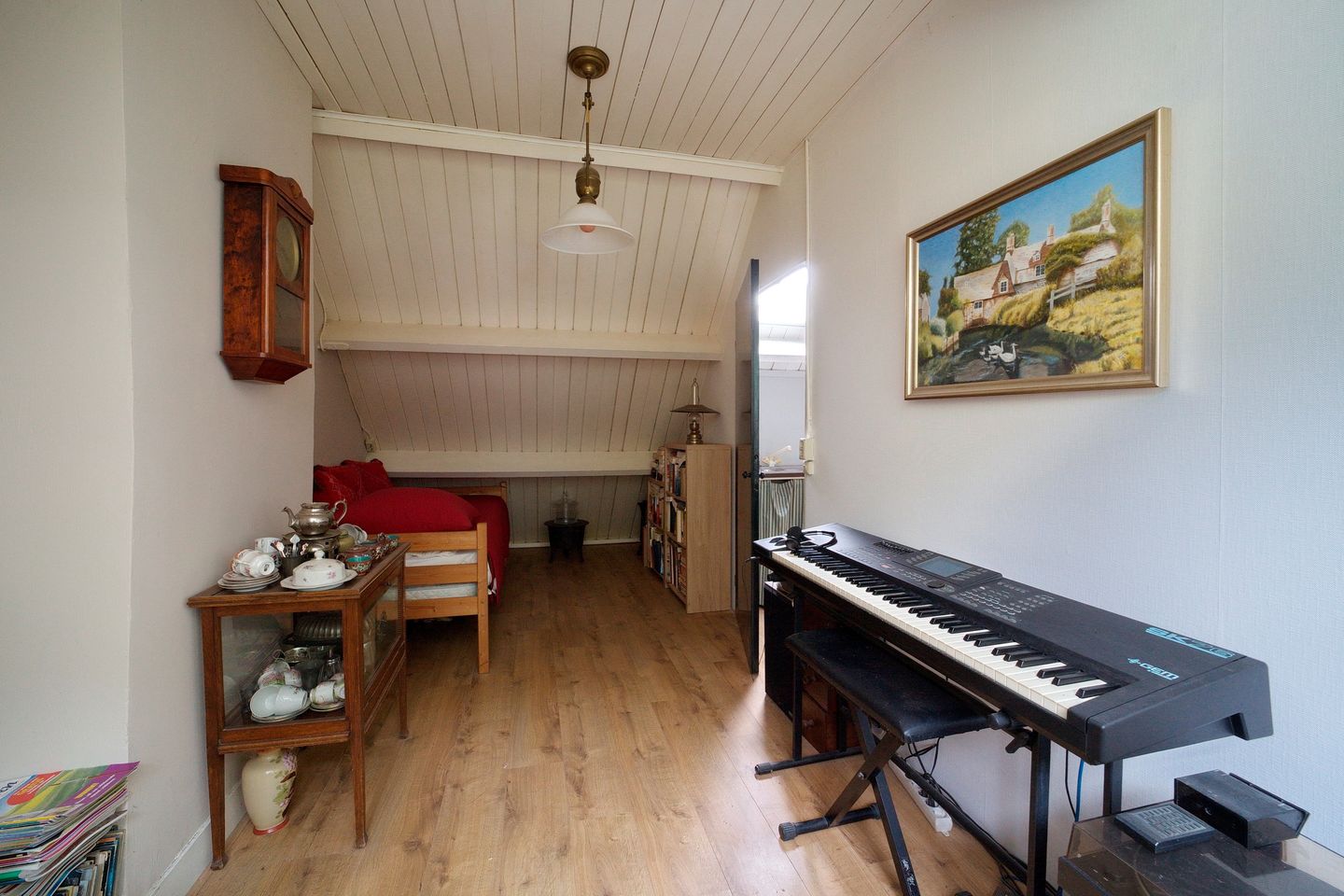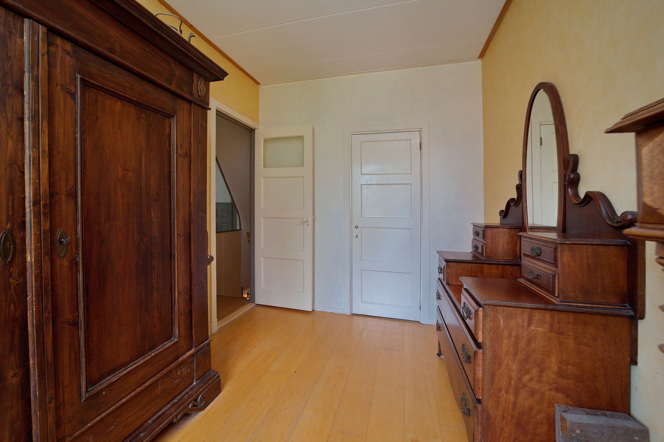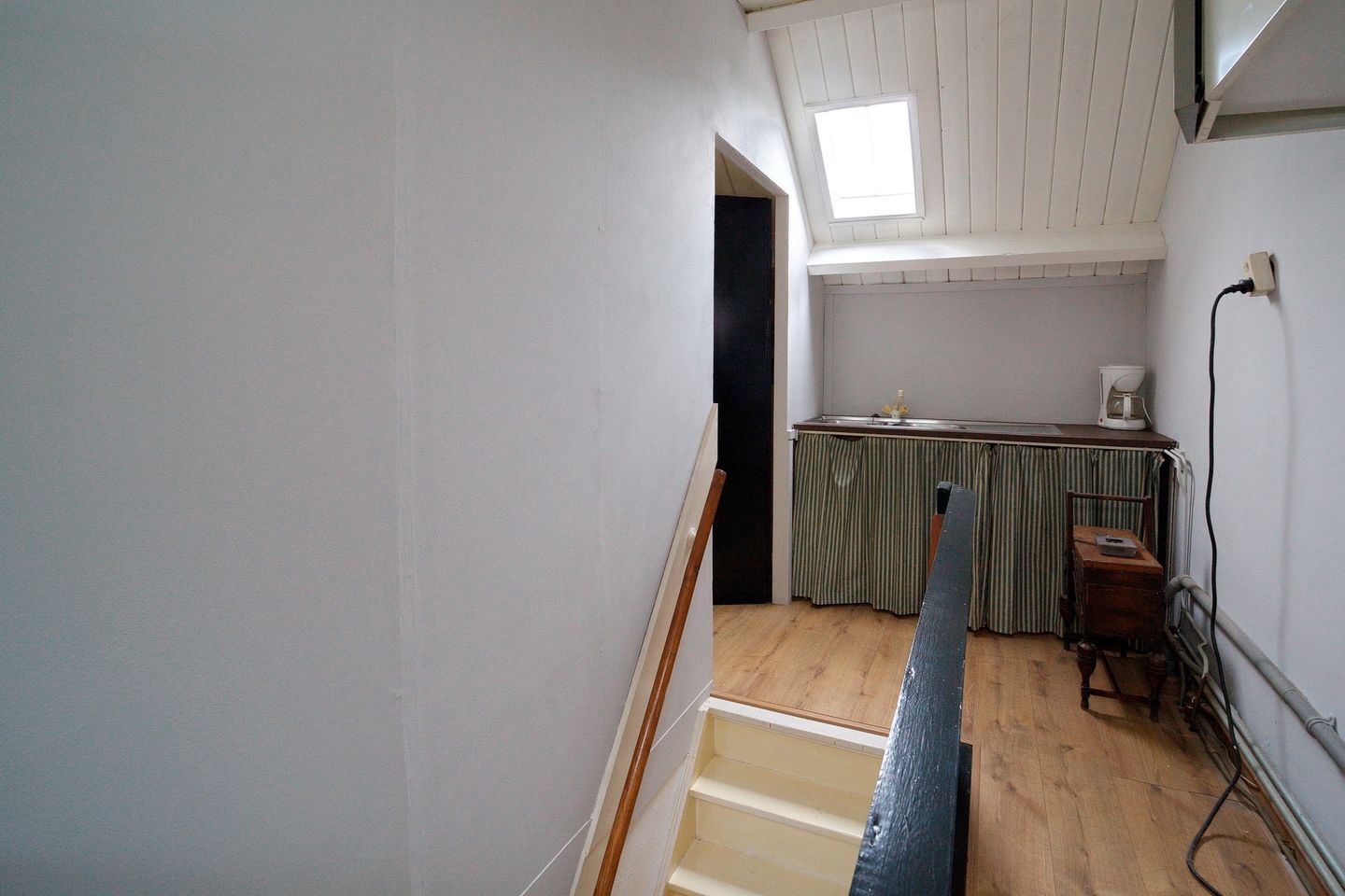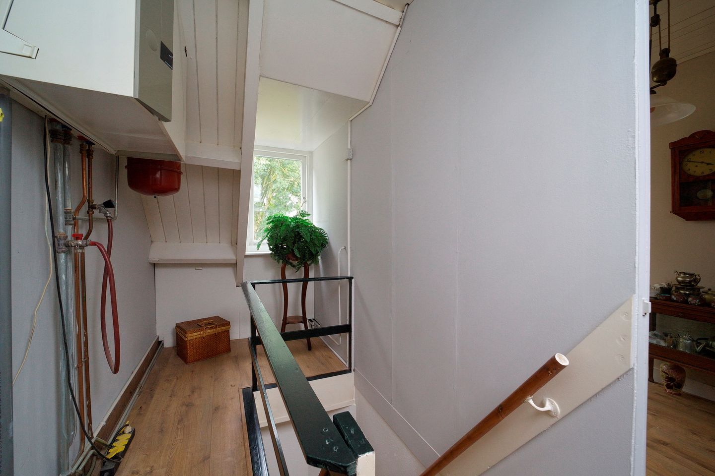 2e Verdieping: Ook de 2e verdieping heeft een vaste houten trap; op overloop is de CV-opstelling, raam voor- en achterzijde, kitchenette en derde slaapkamer met dakkapel aan de voorzijde. Bergruimte achter de schotten.