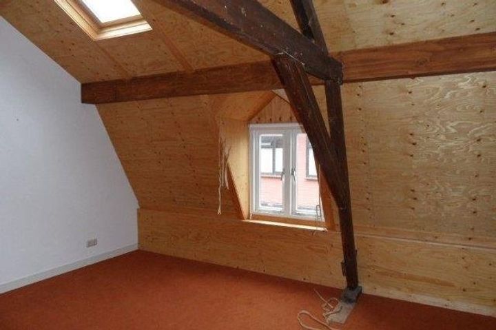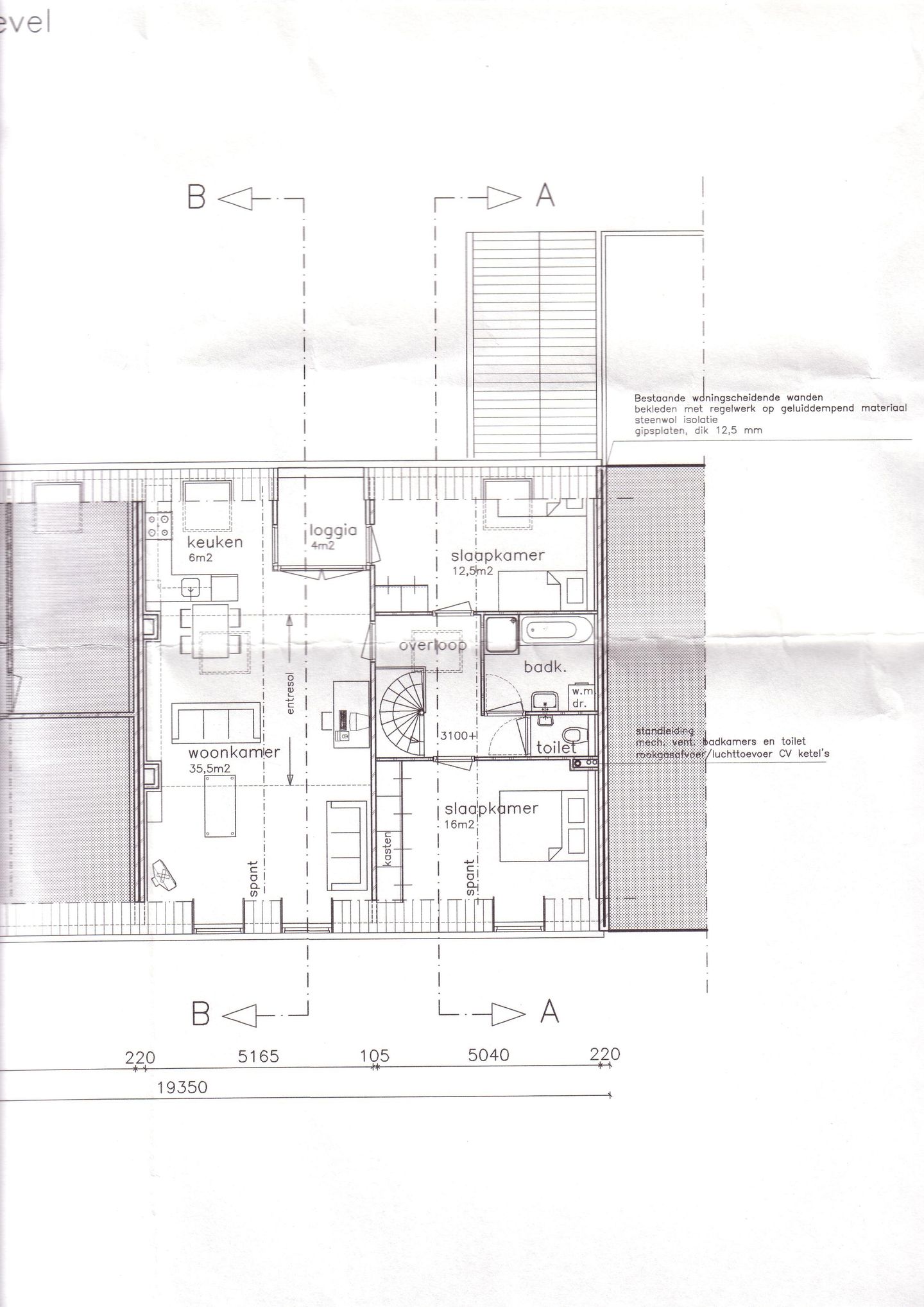 Indeling: hal met trapopgang, overloop met vide, ruim toilet met fonteintje, royale woonkamer (36m2) met twee dakkapellen en ruime vide (25m2) met dakraam, openslaande deuren naar loggia en aangrenzende keukenhoek (6m2) voorzien van koel/vriescombinatie, oven en kookplaat, werk/slaapkamer (16m2) met deur naar loggia, oost-zuidoost gelegen, luxe badkamer met ligbad en douche, wastafel en designradiator, 2e ruime slaapkamer (13m2) met dakkapel en dakraam. Boven de slaap- en badkamer bevindt zich nog een entresol (12m2). Hier kan ook worden geslapen of gewerkt. Zowel stenen als tapijt op de vloeren aanwezig en er zijn rolgordijnen.