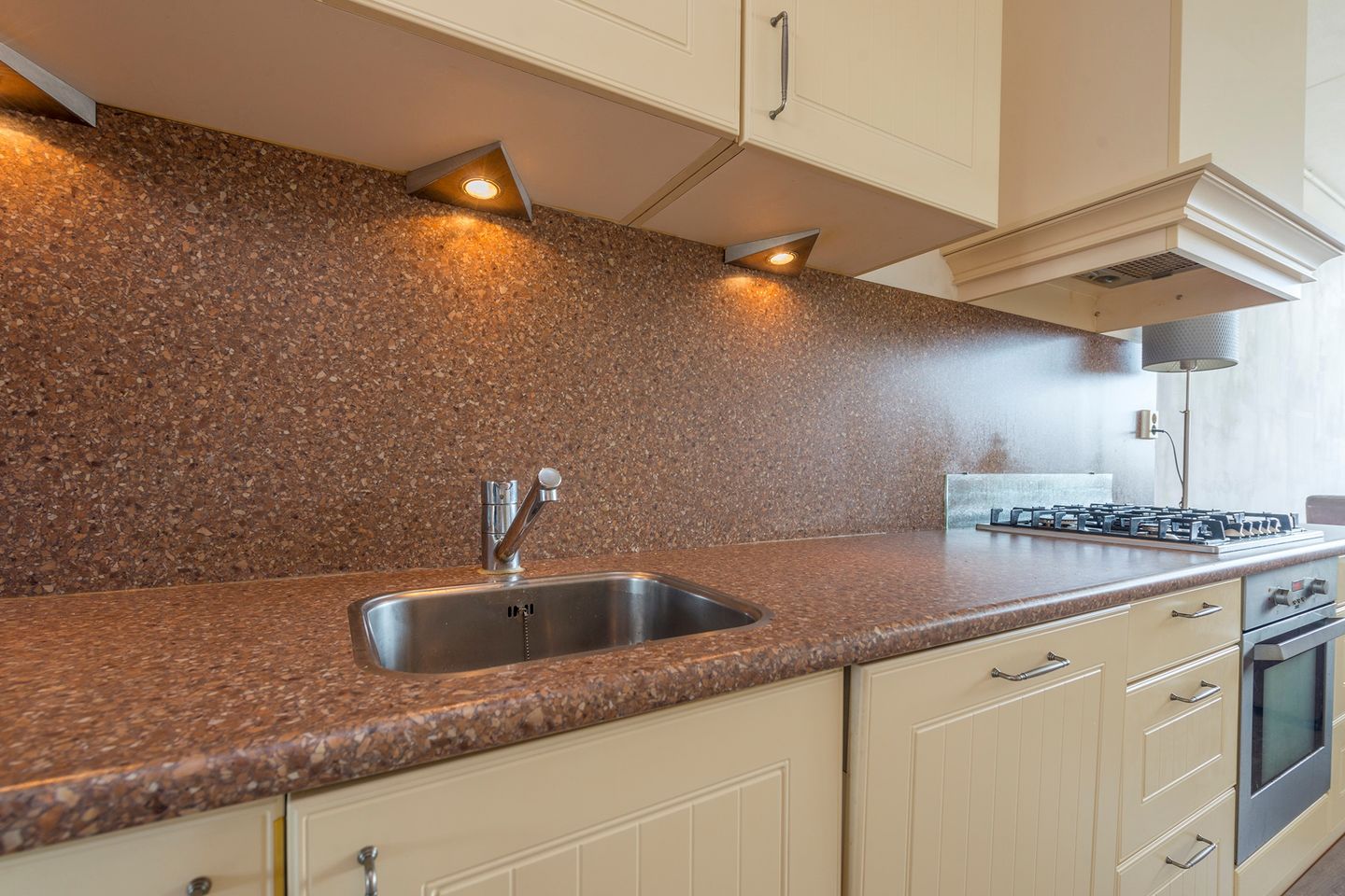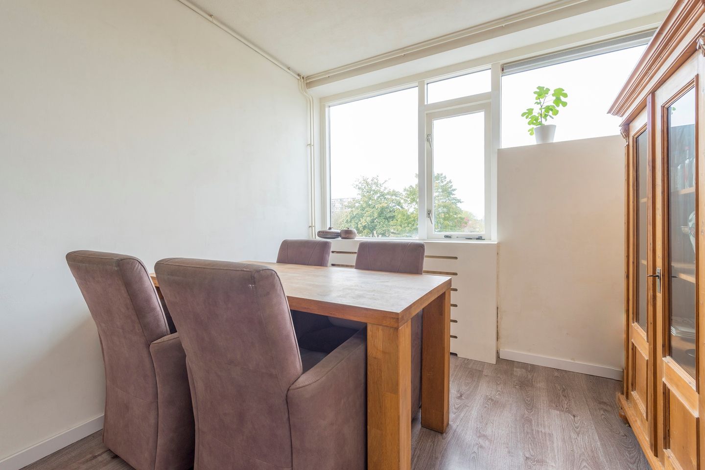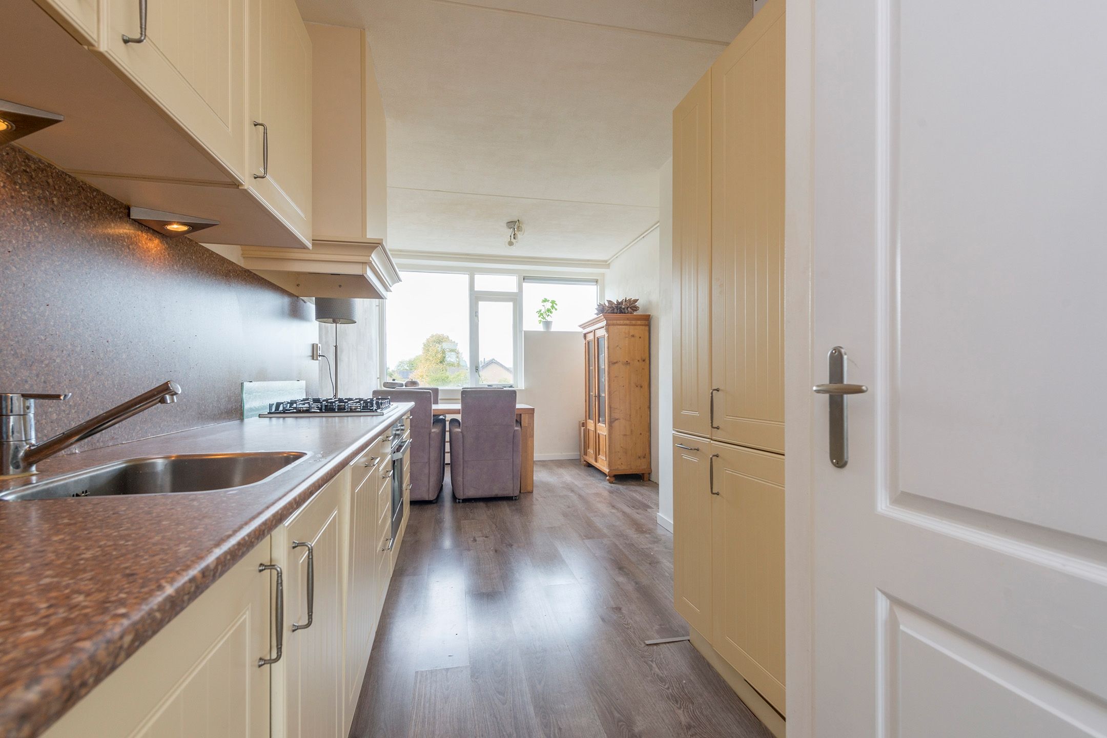 Aan de andere zijde van de keuken is een grote trapkast; deze biedt veel ruimte voor het opslaan van voorraad en andere zaken. In de keuken is er ook voldoende ruimte voor het plaatsen van de eethoek en heeft u via de raampartijen goed zicht naar buiten.