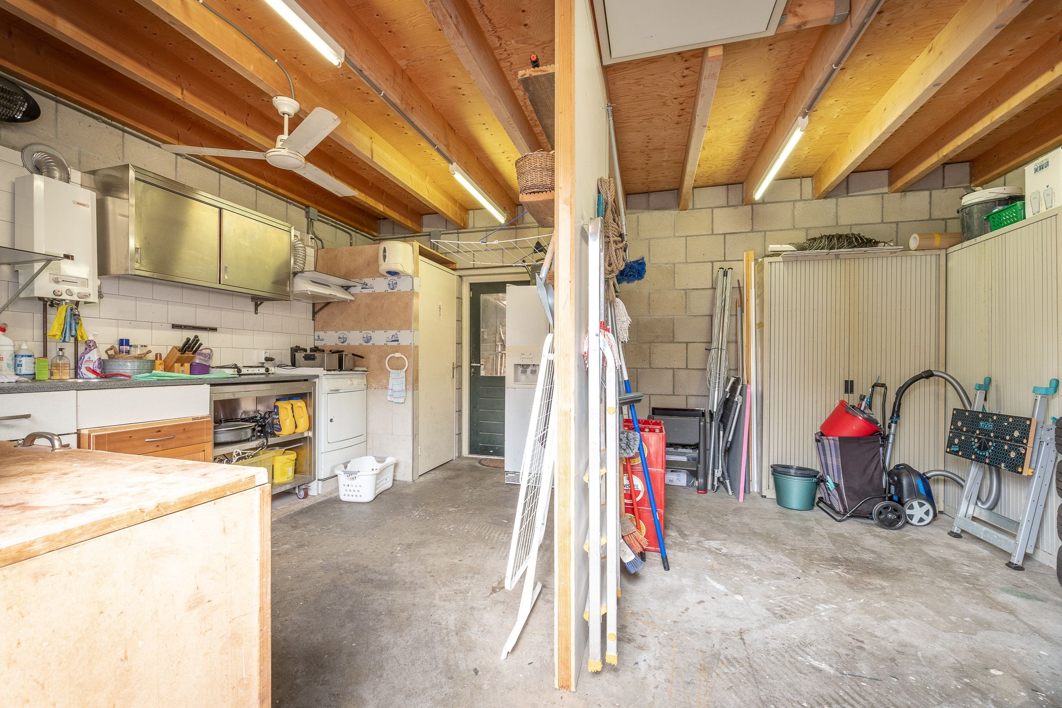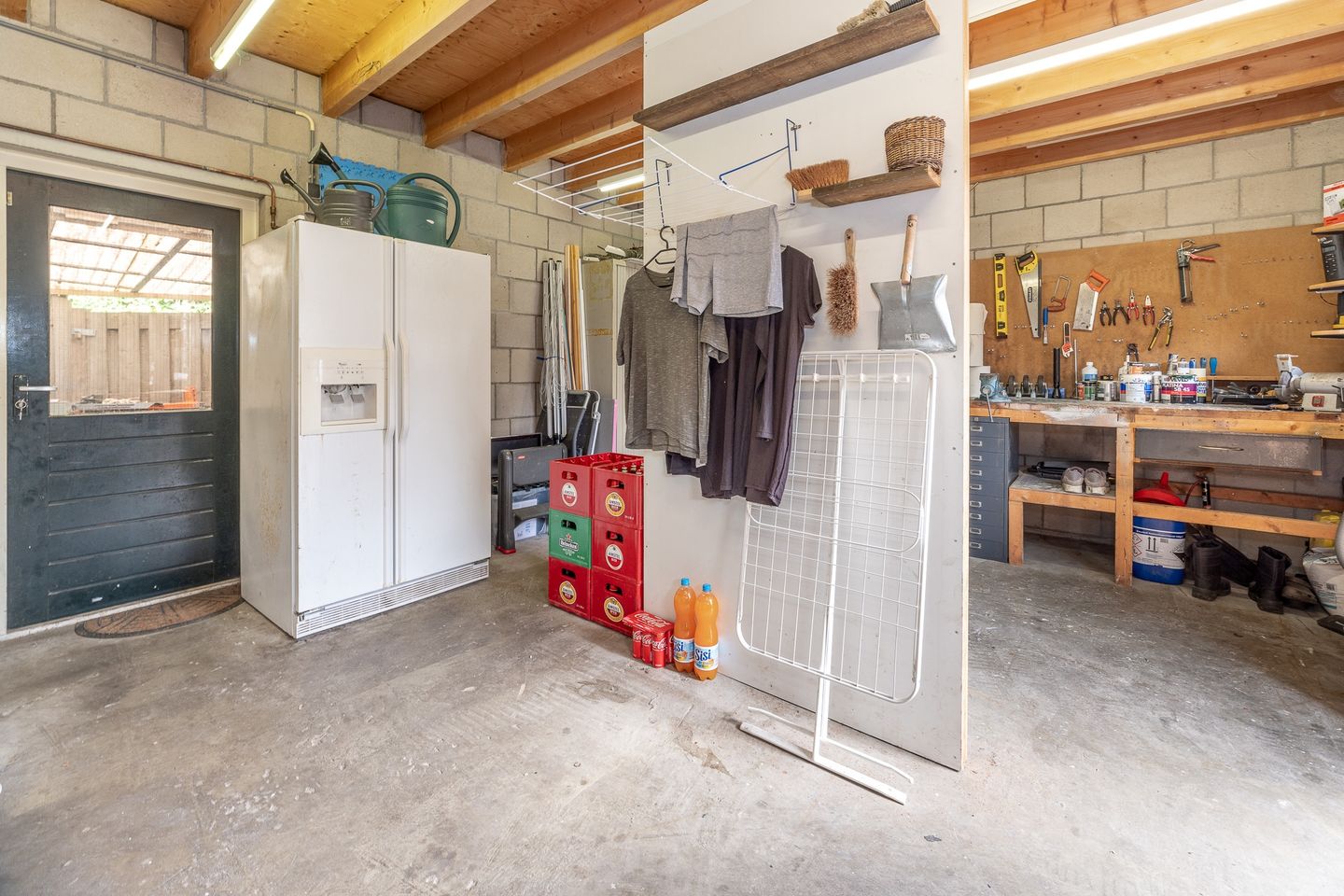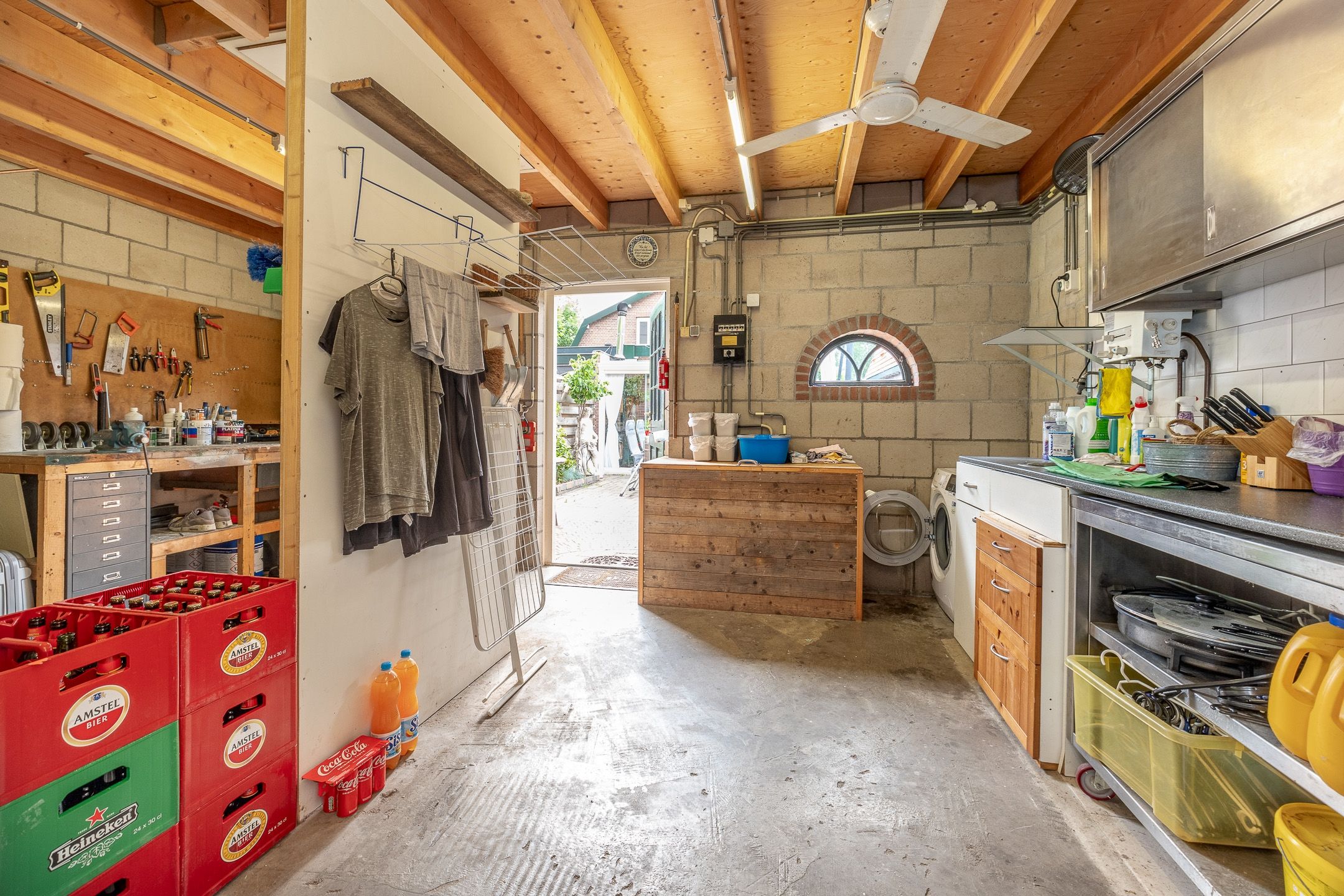 De achtertuin is ook eenvoudig te bereiken via de toegangsdeur aan de brede zijkant van de woning. Daar staat een ruime goed geïsoleerde stenen schuur van 25m2(!) in traditionele stijl gebouwd en voorzien van een keukenblok met geijser, werkbank en ook een toilet; daarboven bevindt zich over de gehele lengte een zolder met Veluxramen. Derhalve heel goed te gebruiken als hobby-/klusruimte of eventueel mogelijkheid voor kantoor/bedrijf aan huis.