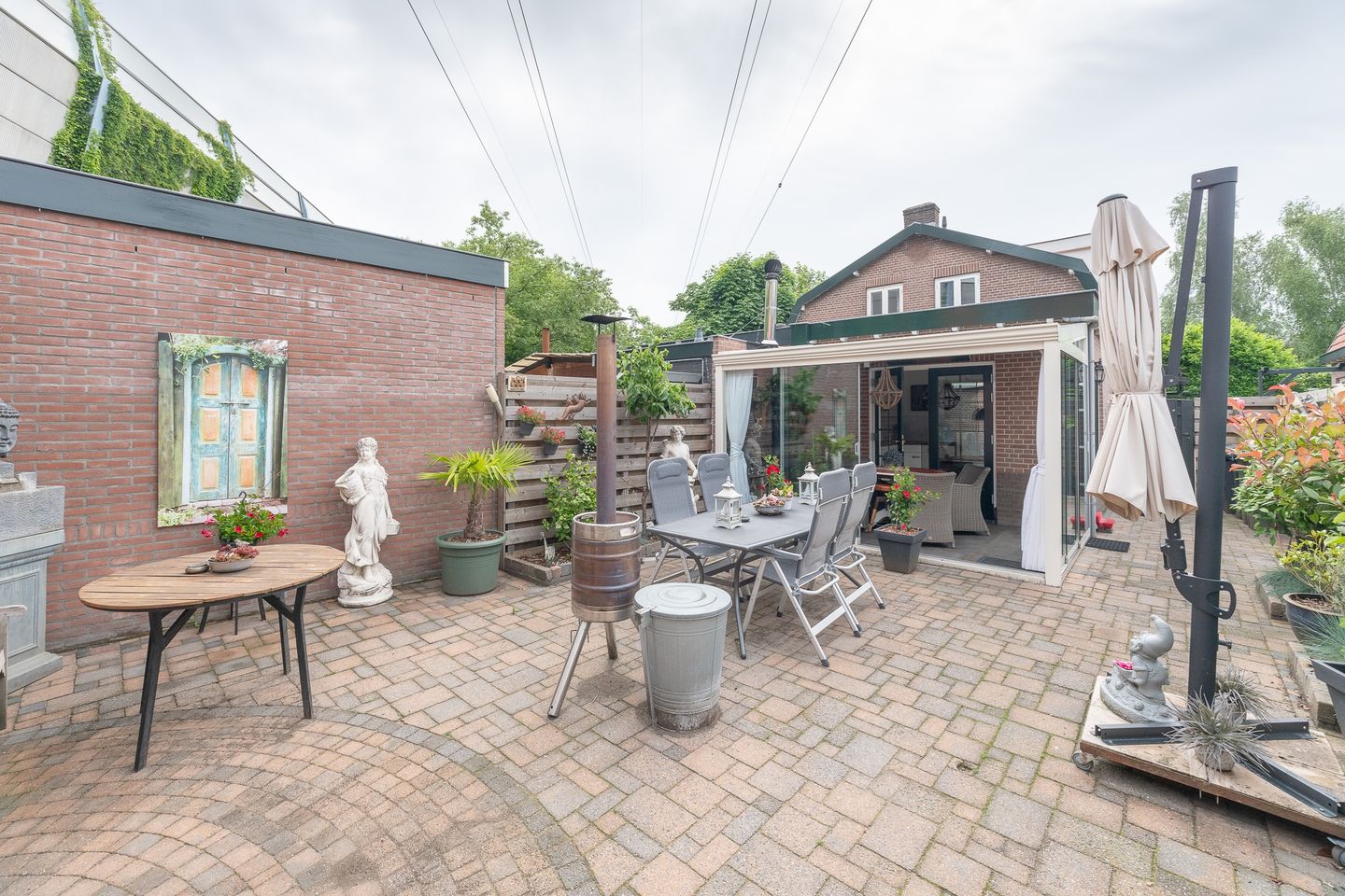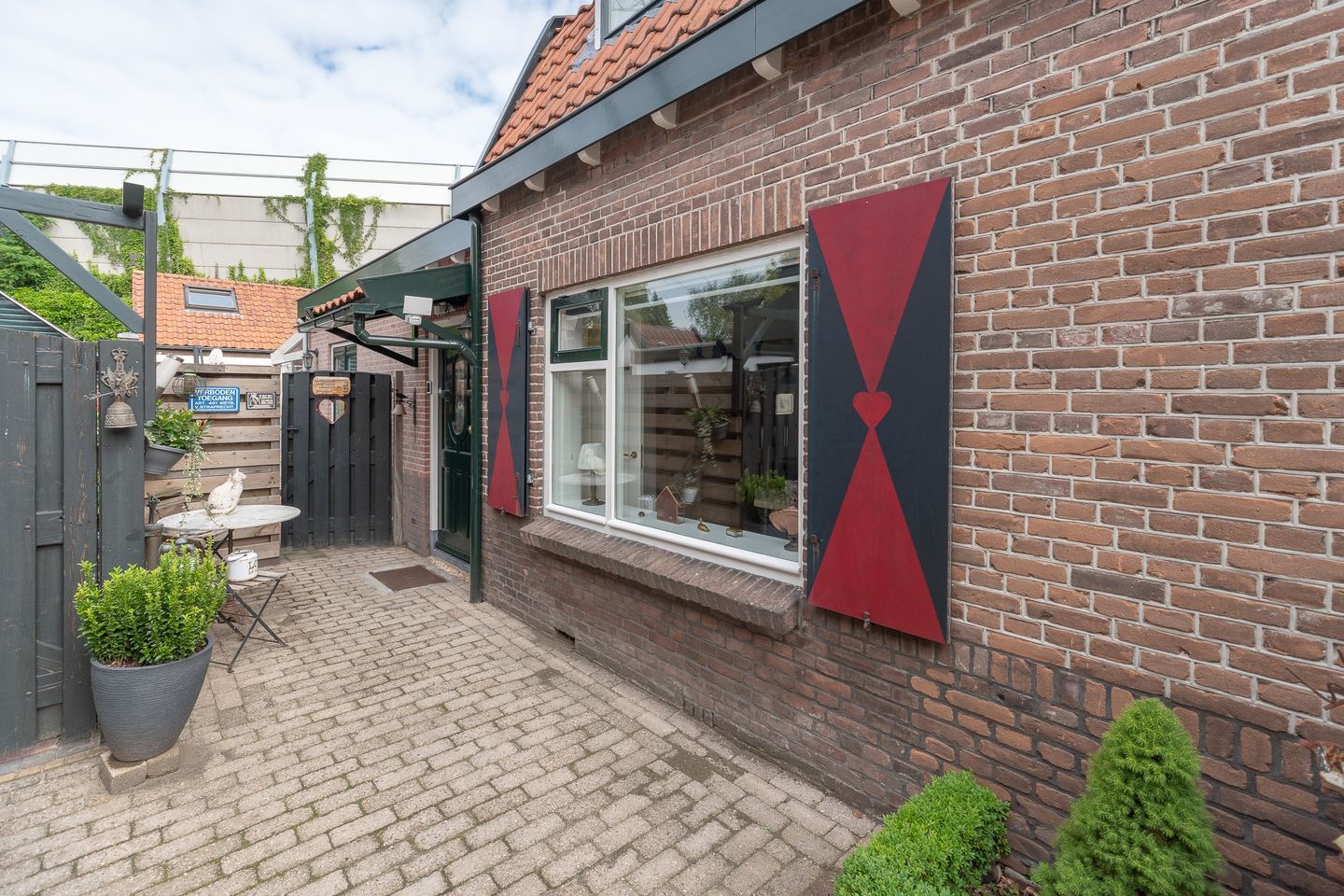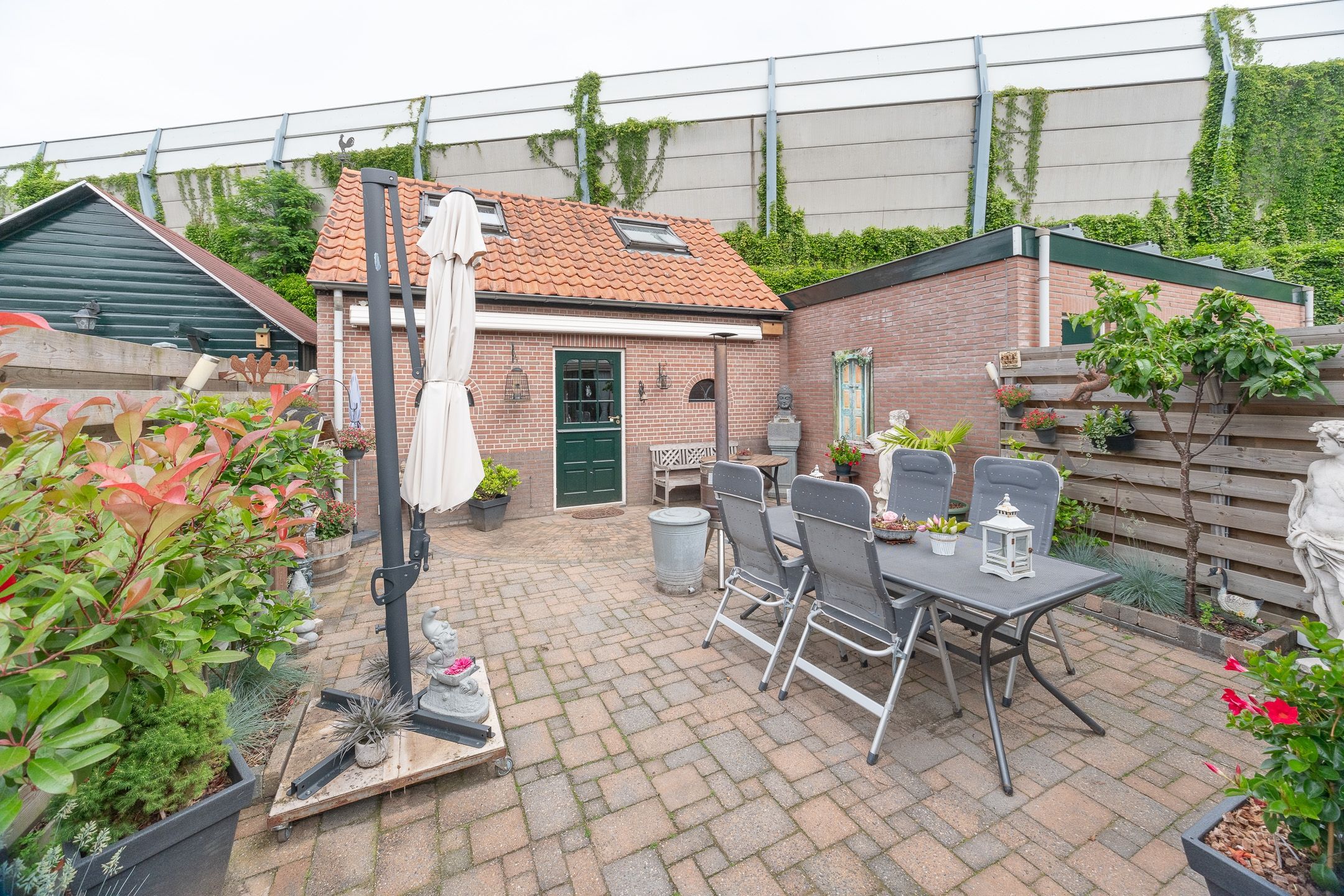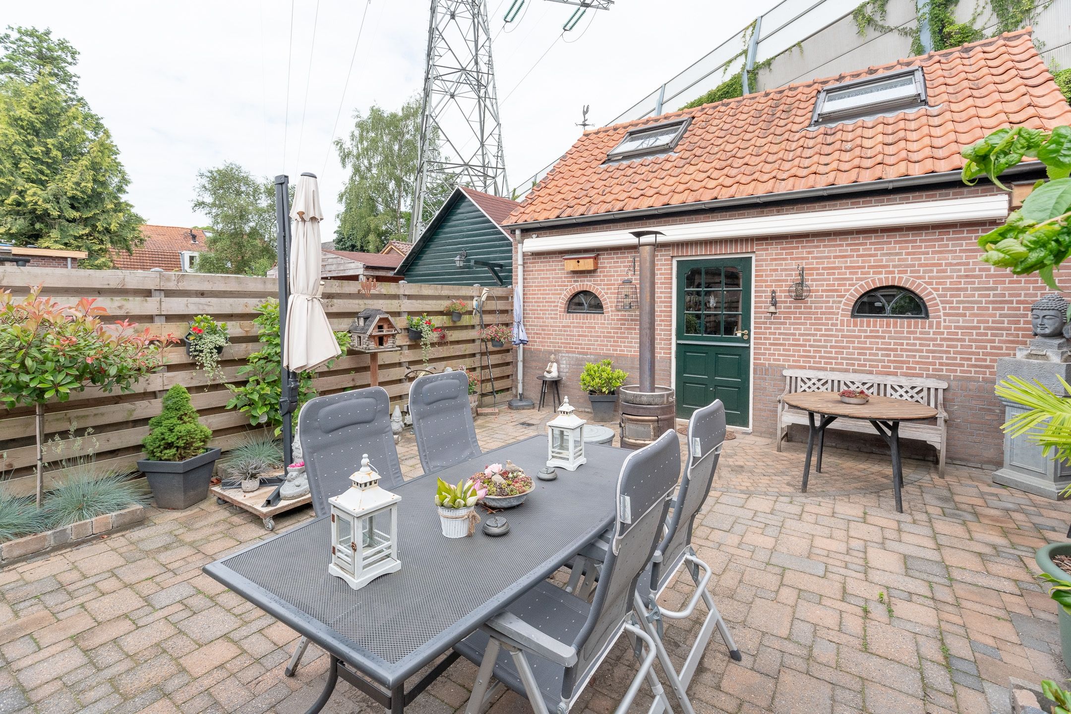 De achtertuin is ook eenvoudig te bereiken via de toegangsdeur aan de brede zijkant van de woning. Daar staat een ruime goed geïsoleerde stenen schuur van 25m2(!) in traditionele stijl gebouwd en voorzien van een keukenblok met geijser, werkbank en ook een toilet; daarboven bevindt zich over de gehele lengte een zolder met Veluxramen. Derhalve heel goed te gebruiken als hobby-/klusruimte of eventueel mogelijkheid voor kantoor/bedrijf aan huis.