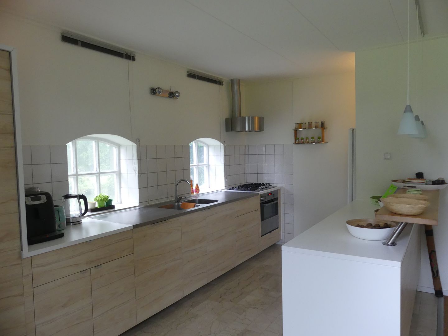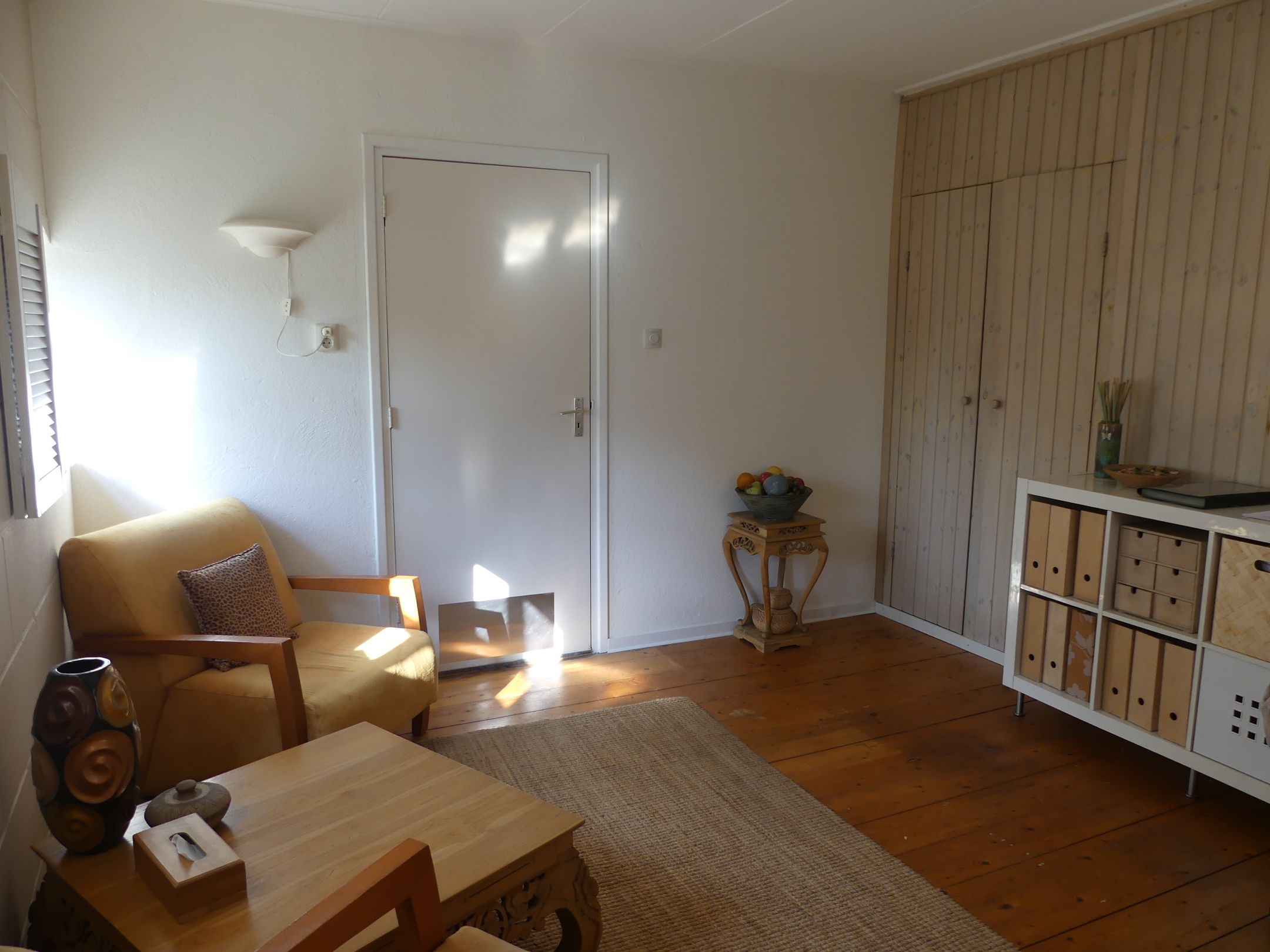 Entree, hal met toilet en meterkast/wasruimte, 2 slaapkamers op de begane grond, badkamer met inloopdouche en wastafel, ruime woonkamer met open keuken met apparatuur, Ruime zolderverdieping met voldoende opslagmogelijkheden.