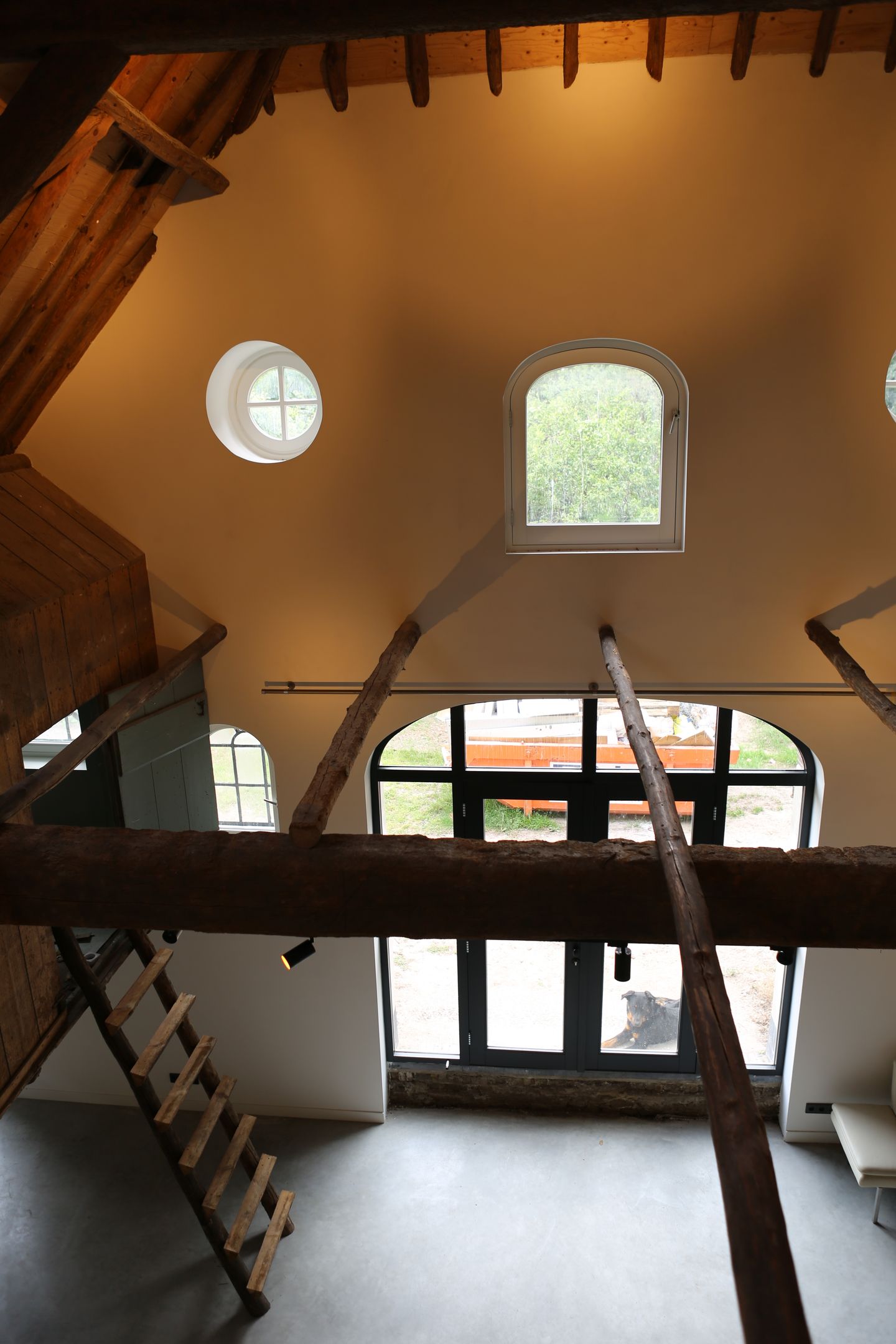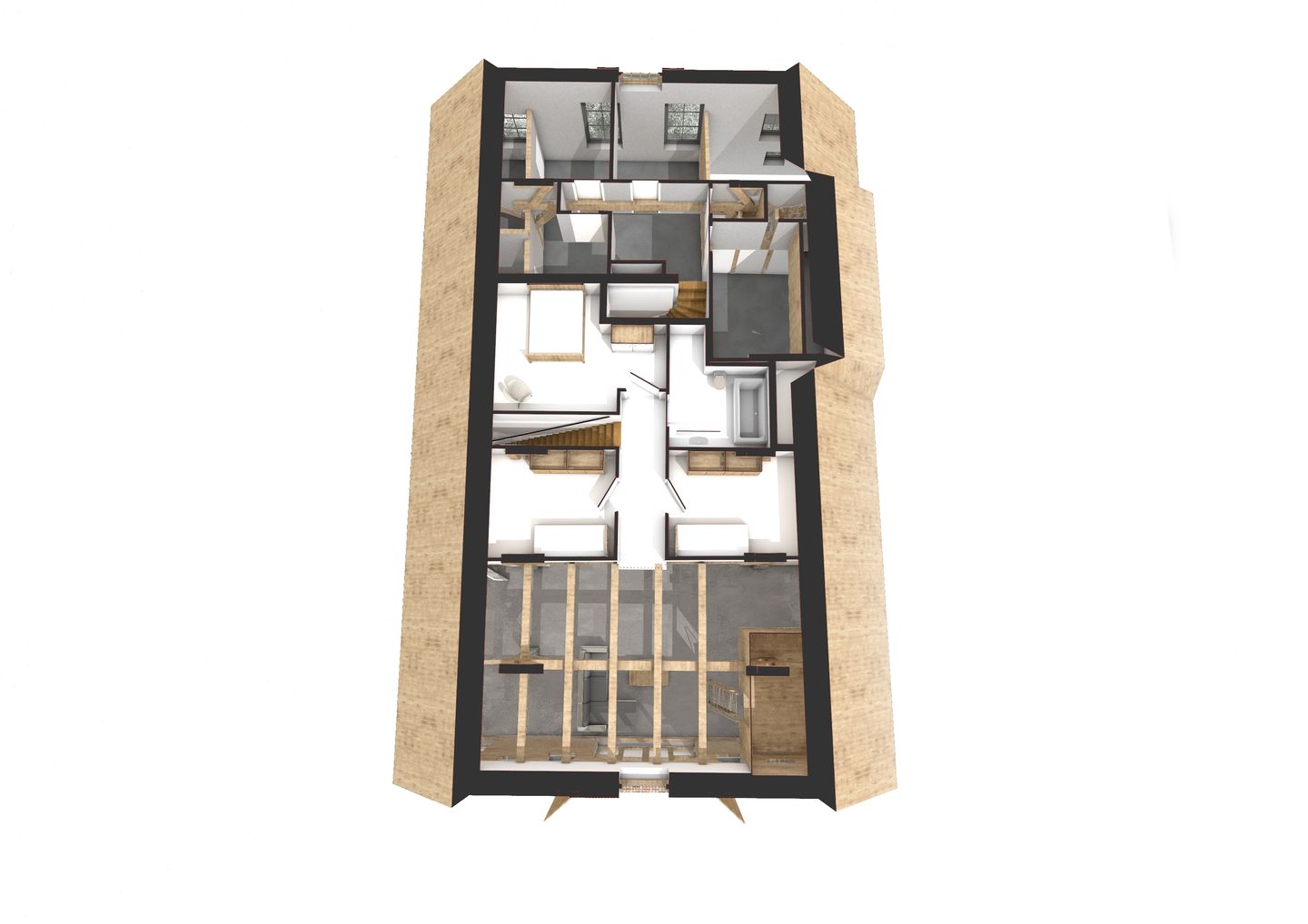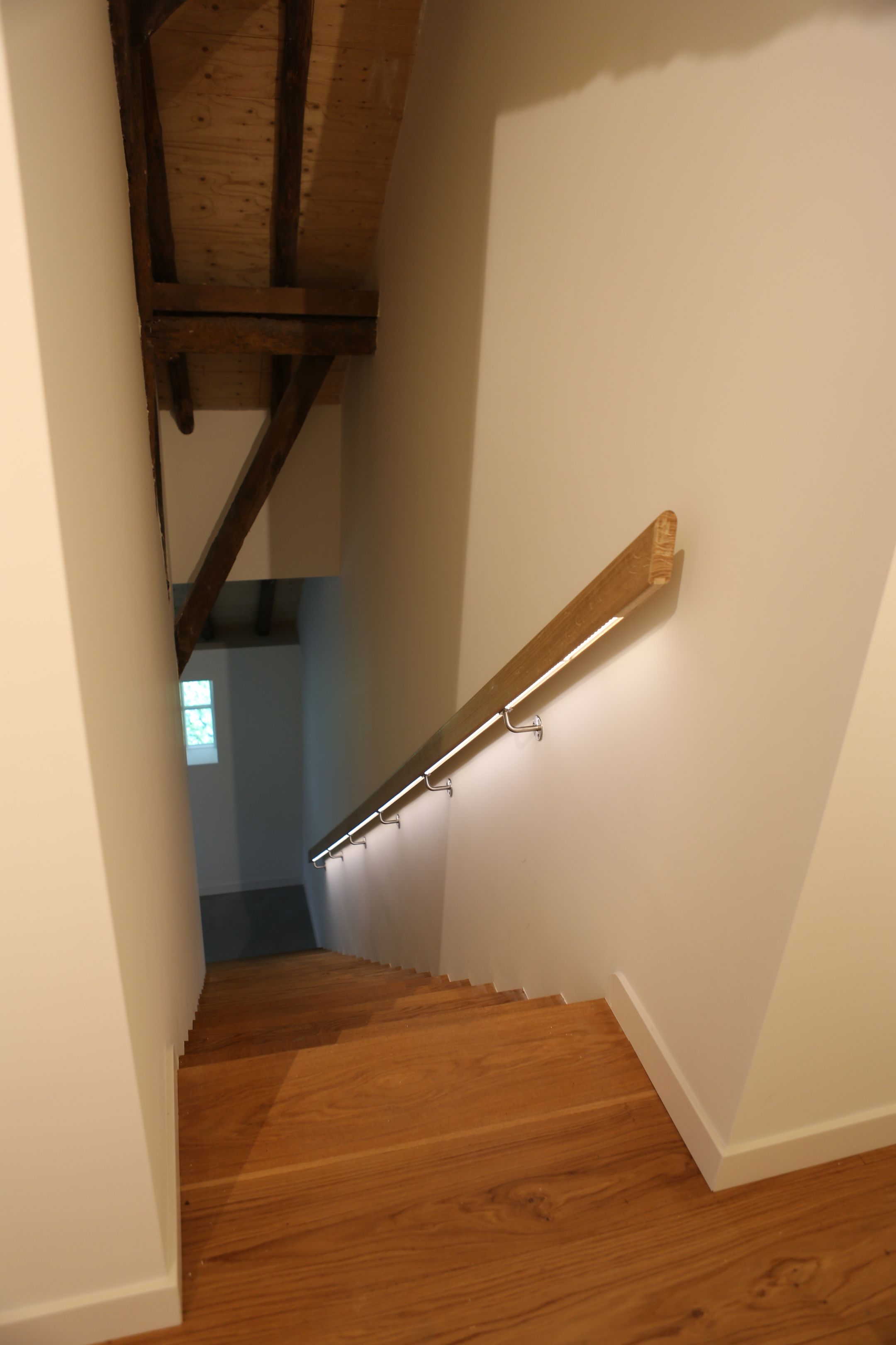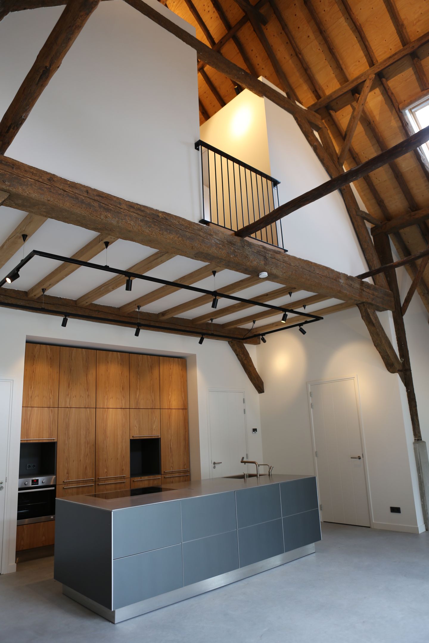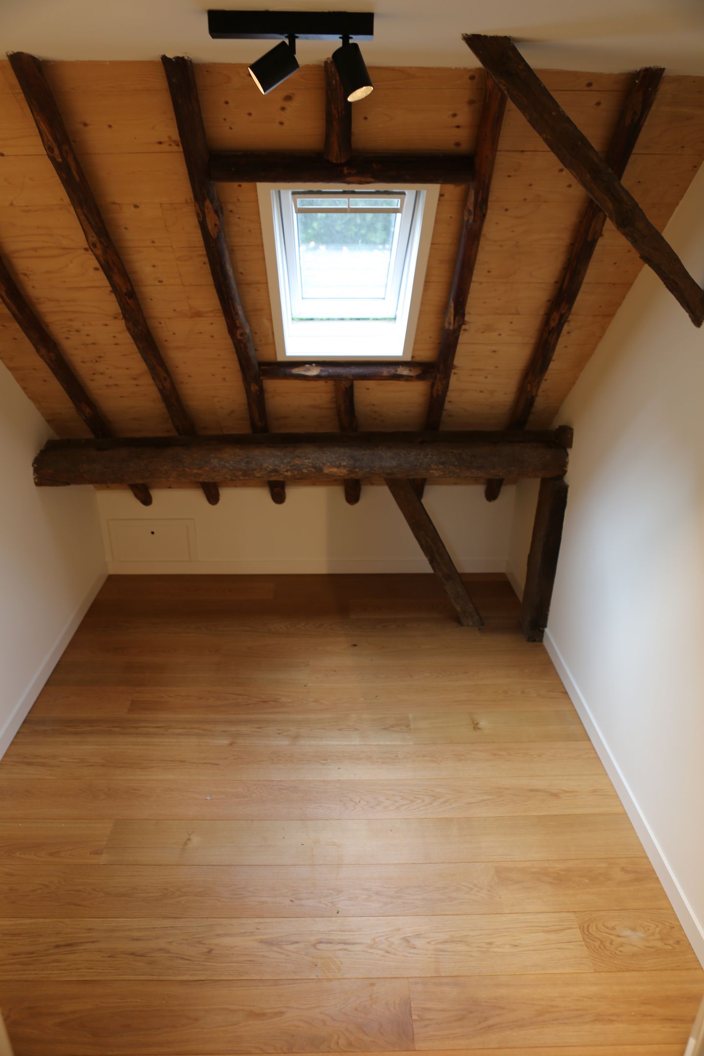 Overloop met vide, 3 slaapkamers uitgerust met dakramen en een eikenvloer ( 2 x 10m2 en 1 x 15m2), badkamer met dakraam, vloerverwarming, inloopdouche, wastafelmeubel, ligbad, 2e toilet en designradiator.