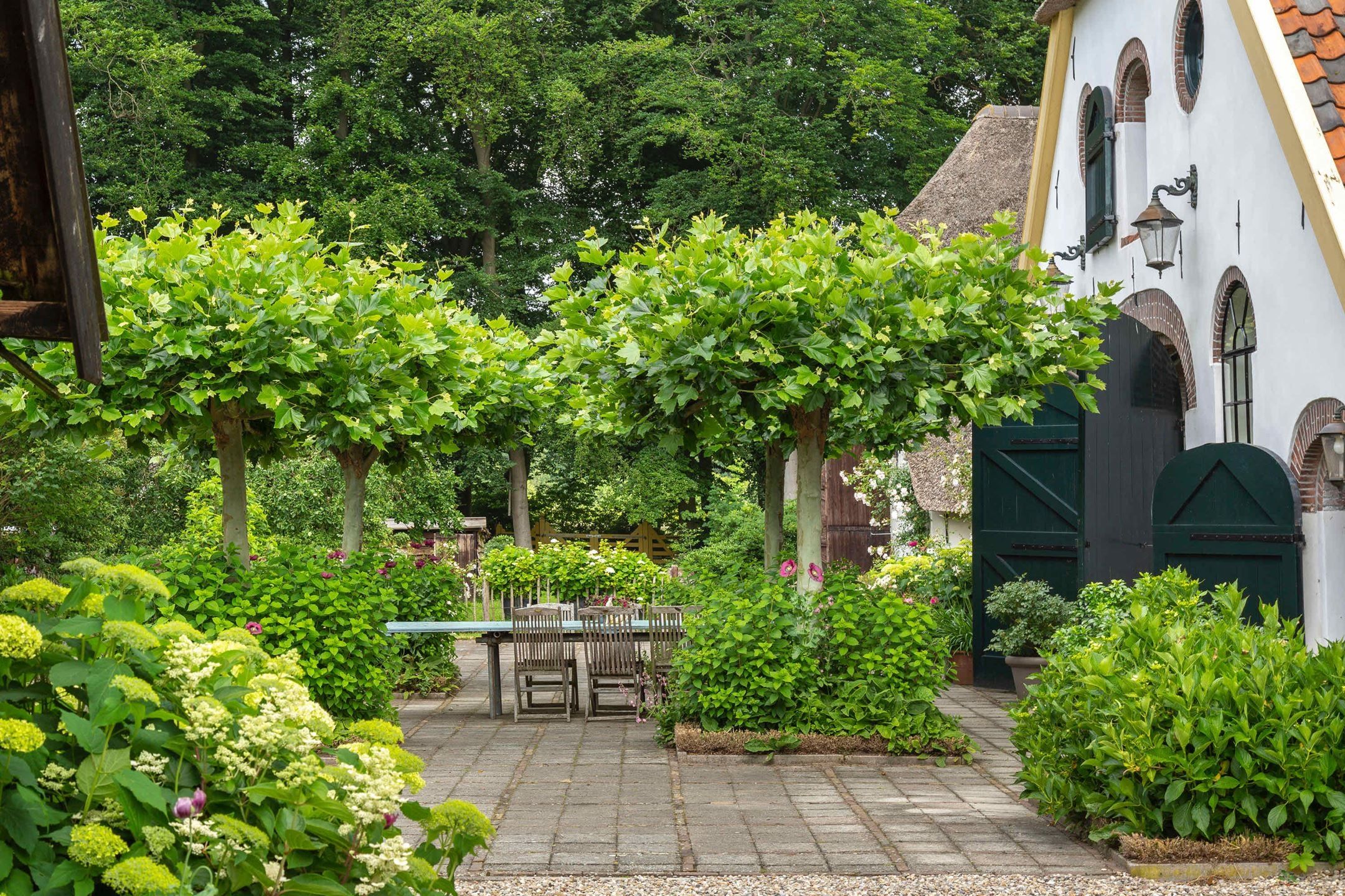 De afgesloten tuin op het Zuid-Westen heeft een eigen toegangshek en grenst aan de boomgaard. De tuin wordt onderhouden door de verhuurder.