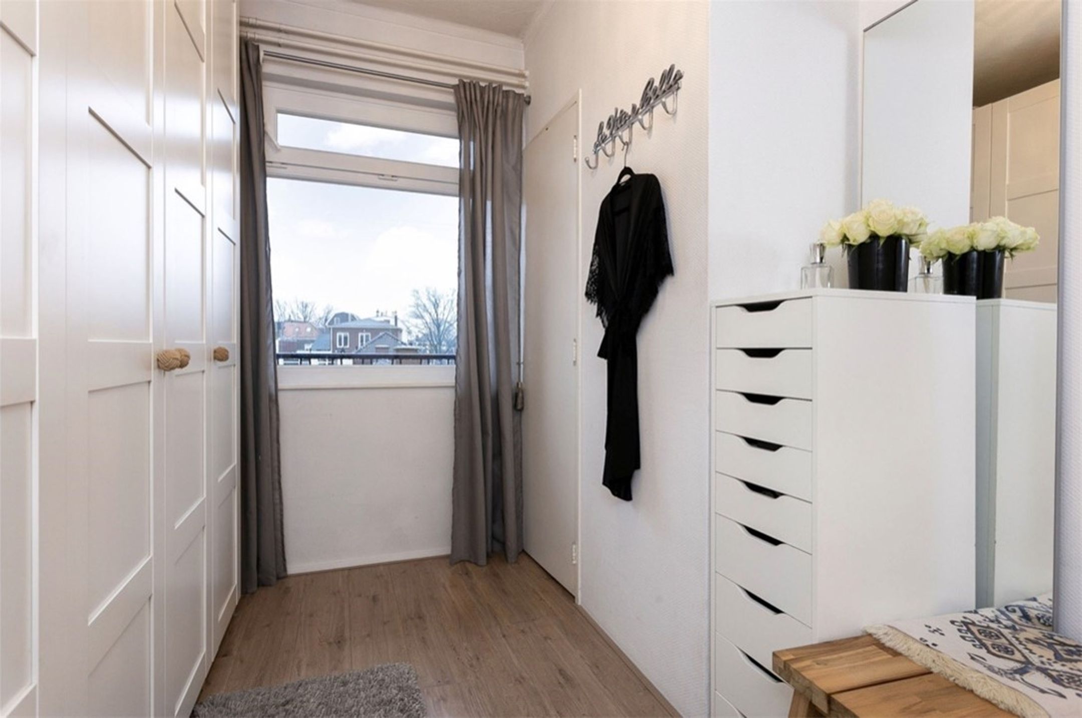 De grootste slaapkamer ligt aan de voorzijde van de woning en heeft een grote glazen schuifpui naar het zonnige balkon met een mooi uitzicht over de stad. De tweede slaapkamer ligt aan de achterzijde van de woning en heeft een groot raam dat uitkijkt op de galerij. Tussen de slaapkamers ligt de badkamer met inloopdouche, wastafel en wc.