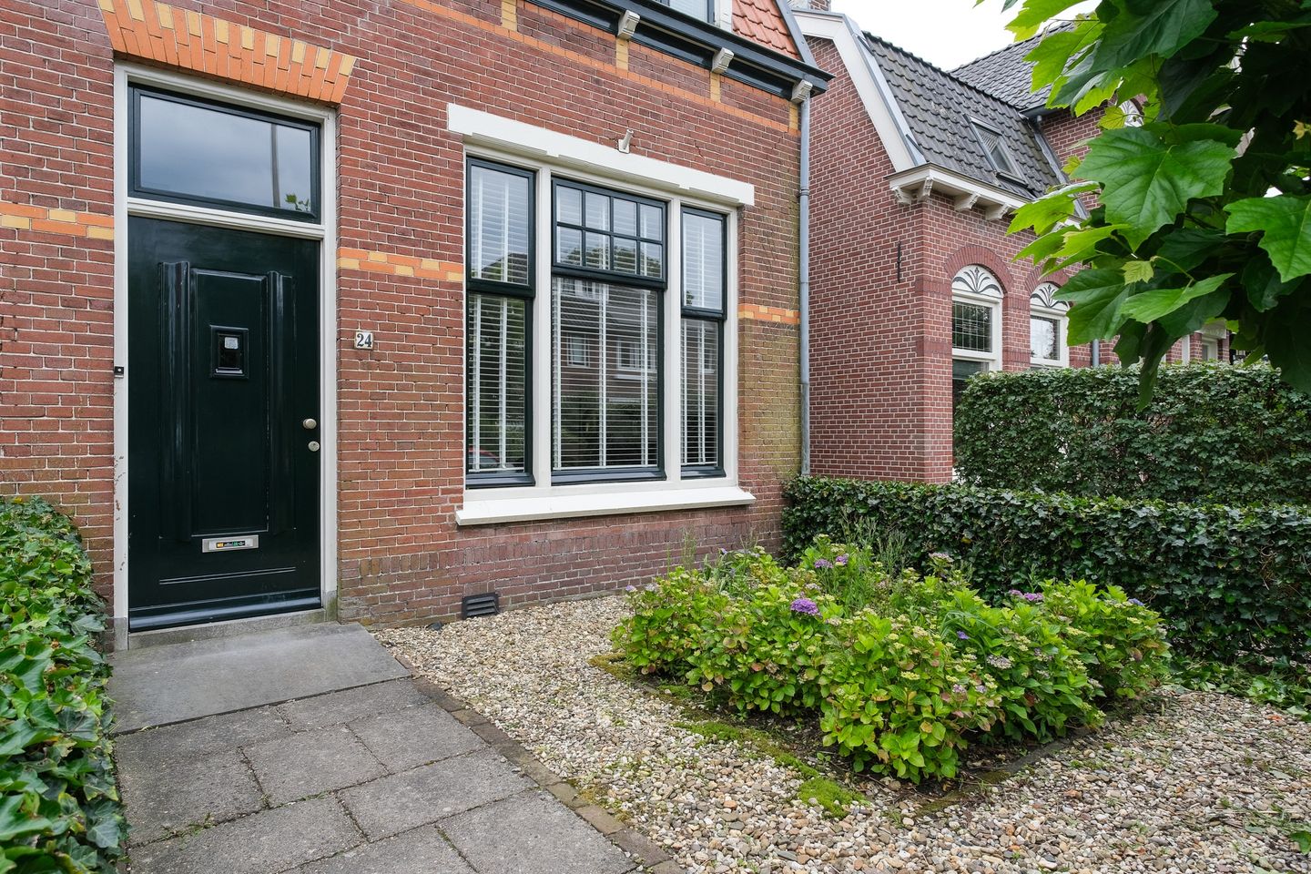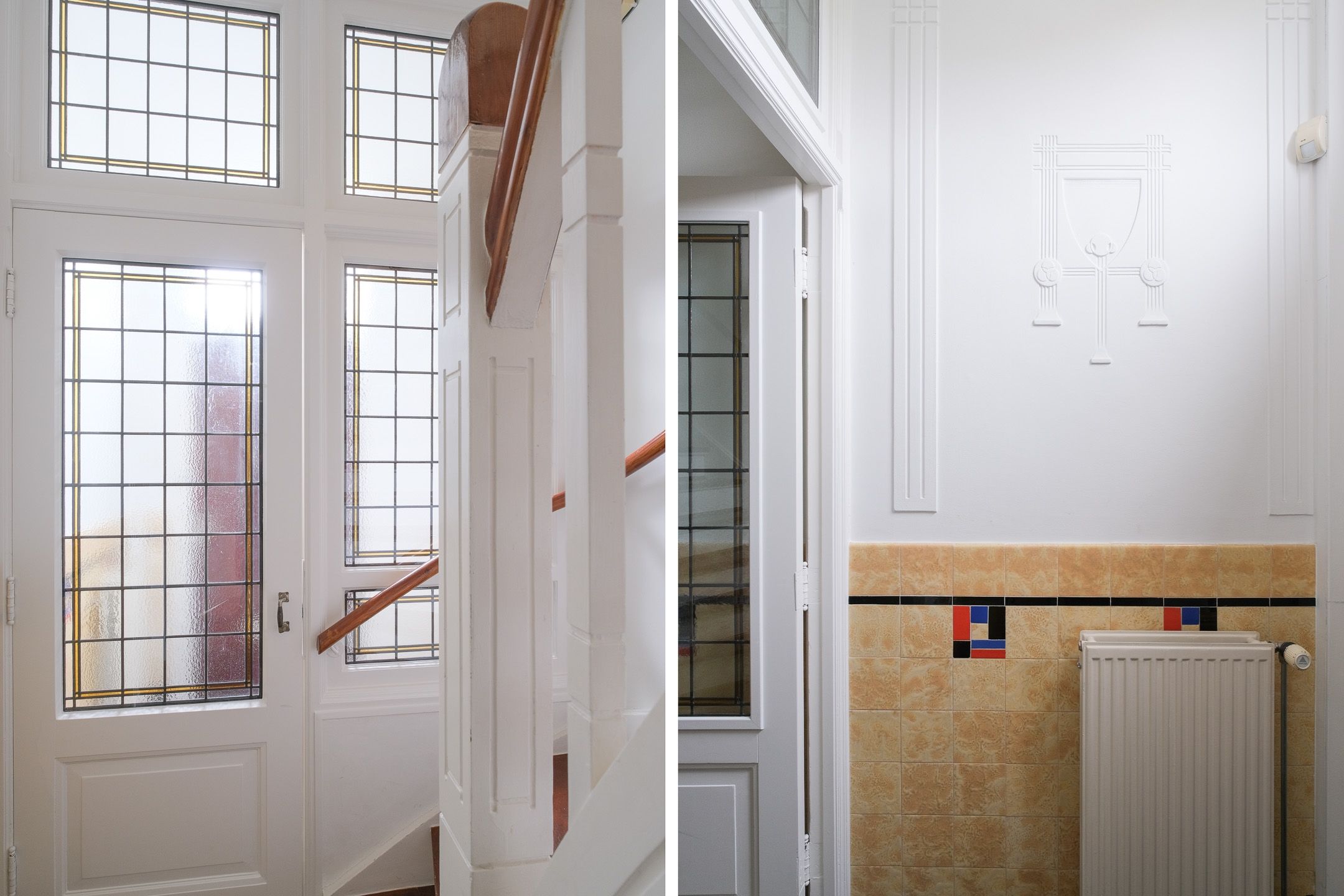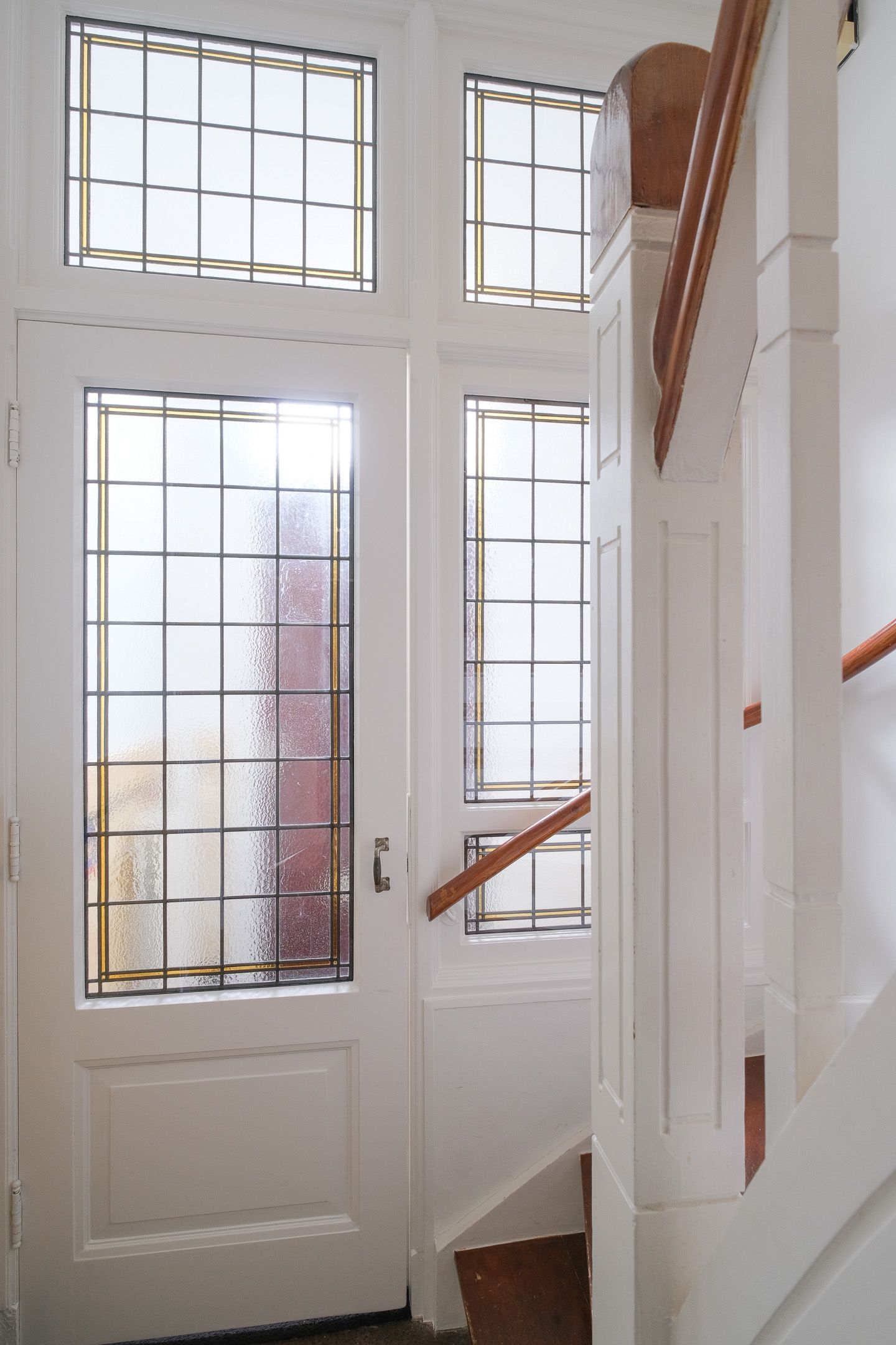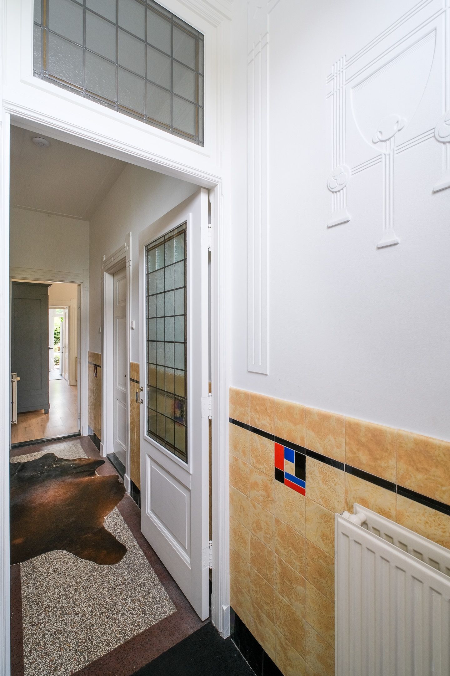 De woning heeft authentieke details als glas-in-lood-ramen en granieten vloer in de hal.