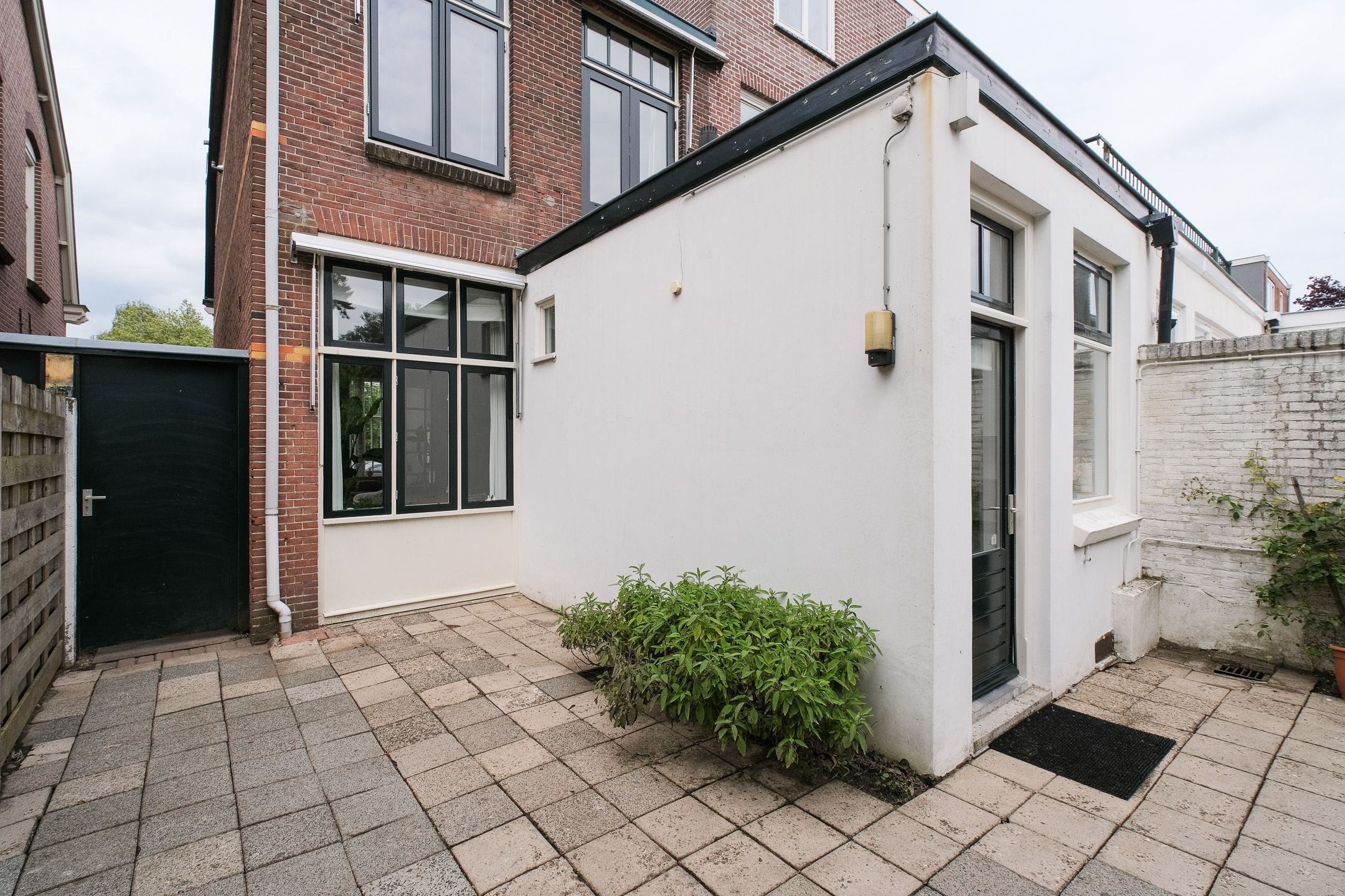 De woning heeft een voortuin, achterom met afgesloten houten schutting met loopdeur naar de op het Zuiden-Oosten gelegen besloten achtertuin.