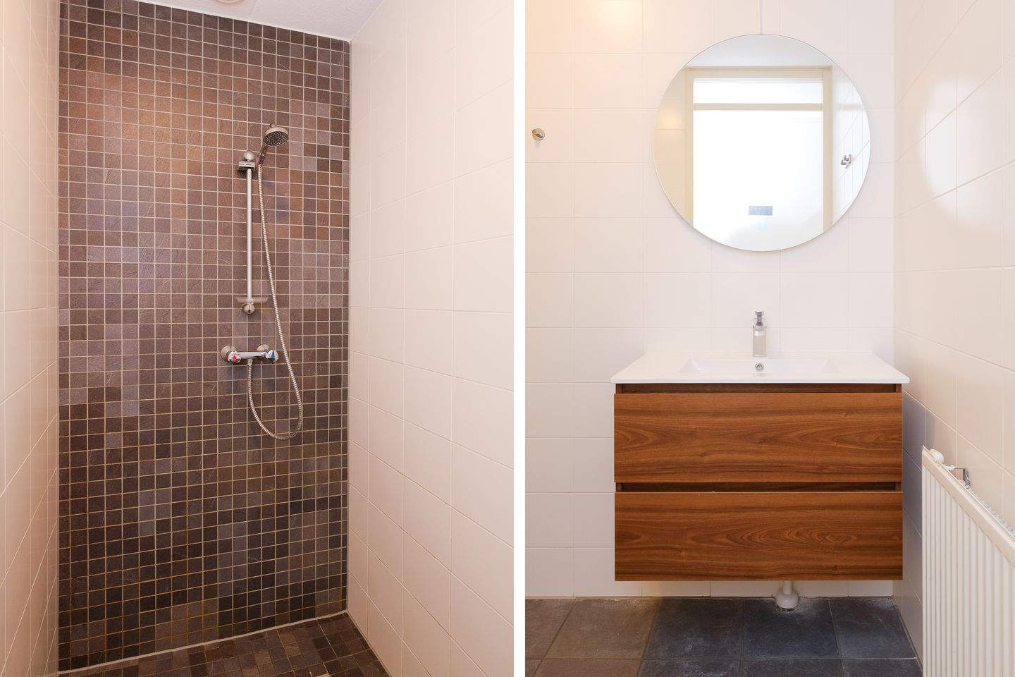• Een nette badkamer met inloopdouche en stijlvol wastafelmeubel;