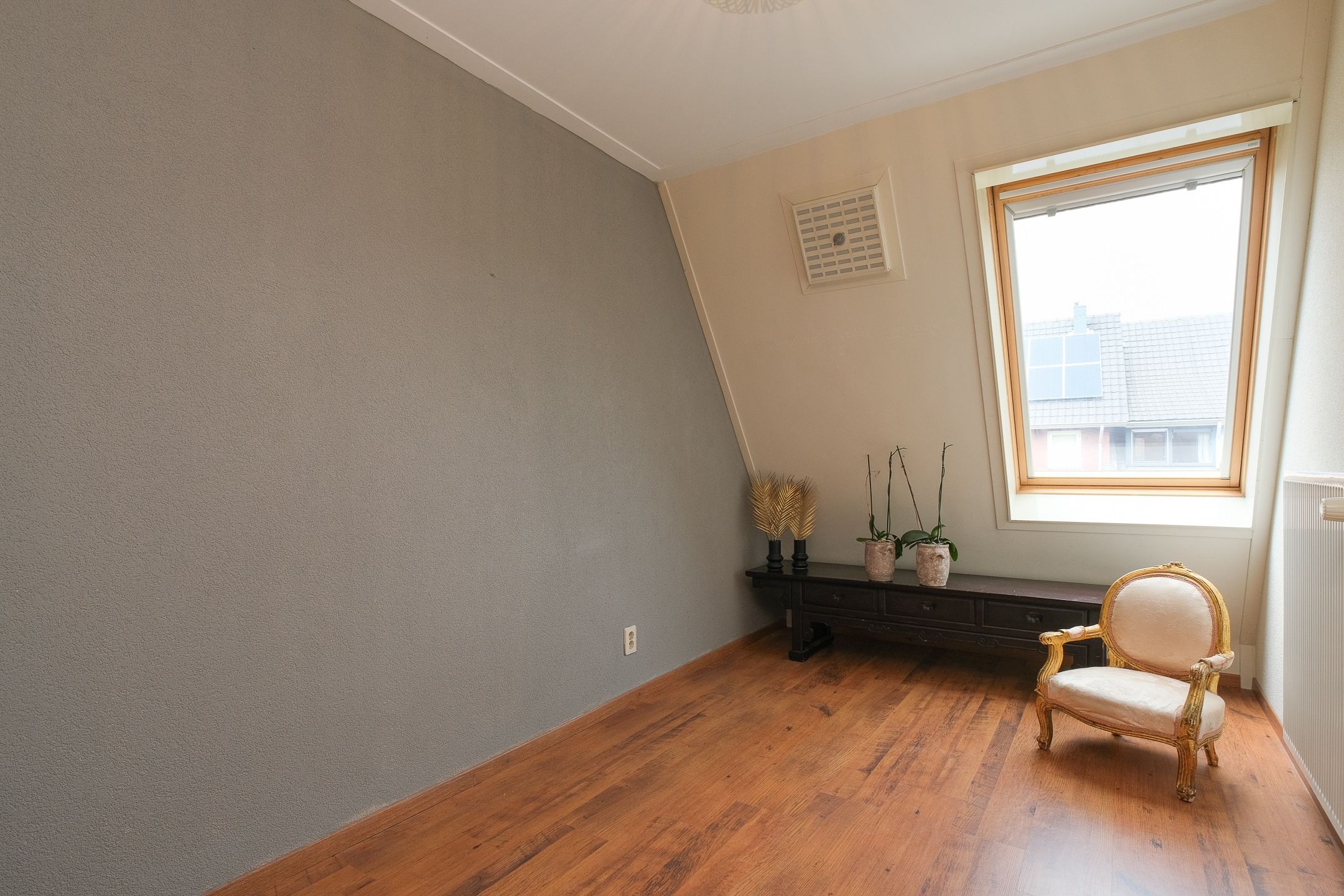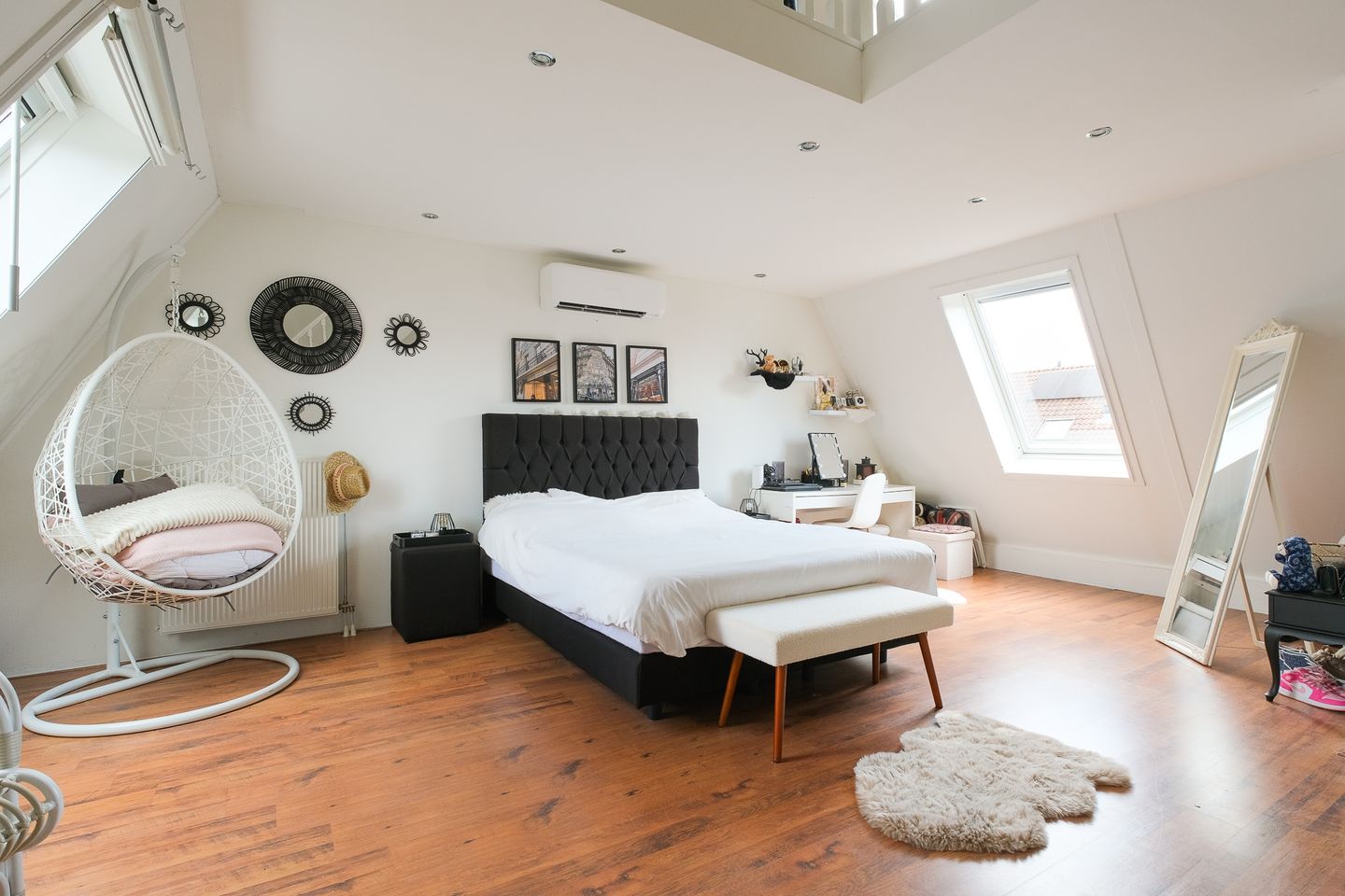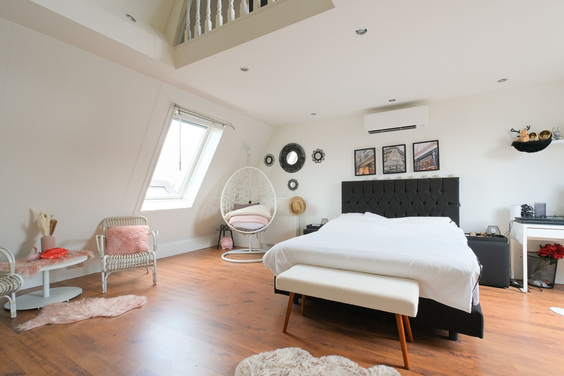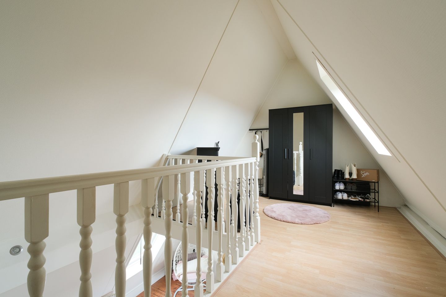De 2e verdieping bereikbaar via een vaste trap is zeer royaal. De grote Velux dakramen zorgen voor veel licht en een ruimtelijk gevoel in deze slaapkamer met airconditioning. Handig is de inpandige kastruimte met daarin de nieuwe CV-ketel, (2024), opstelling voor wasmachine en droger. Een open vaste trap geeft je toegang tot een ruime vide: een extra verdieping!.