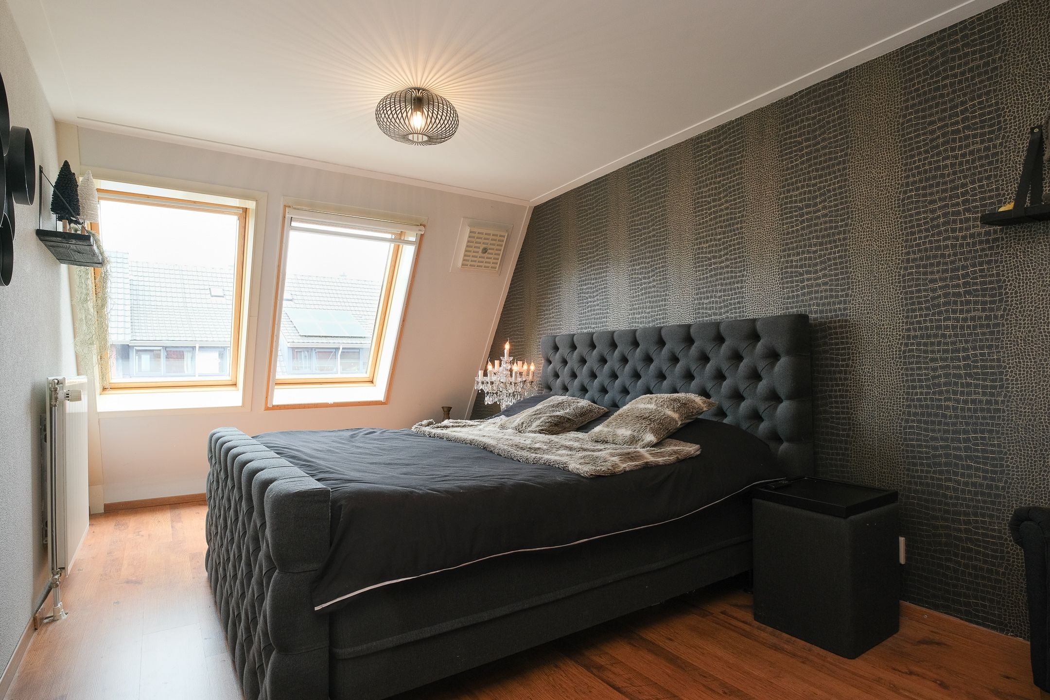 Op de 1e verdieping is ruimte het woord. Een slaapkamer (nu in gebruik als kastenkamer) aan de voorzijde, aan de achterzijde een kleinere slaapkamer en een royale masterbedroom , beide met groot Velux dakraam. De uitgebouwde badkamer aan de voorzijde is strak en in luxe uitvoering, voorzien van een ligbad, een ruime douchecabine, designradiator, een hangend toilet en een luxe wastafelmeubel met wastafel van Villeroy en Boch. Prettig is het raam in de badkamer waardoor je altijd voldoende licht en frisse lucht hebt.