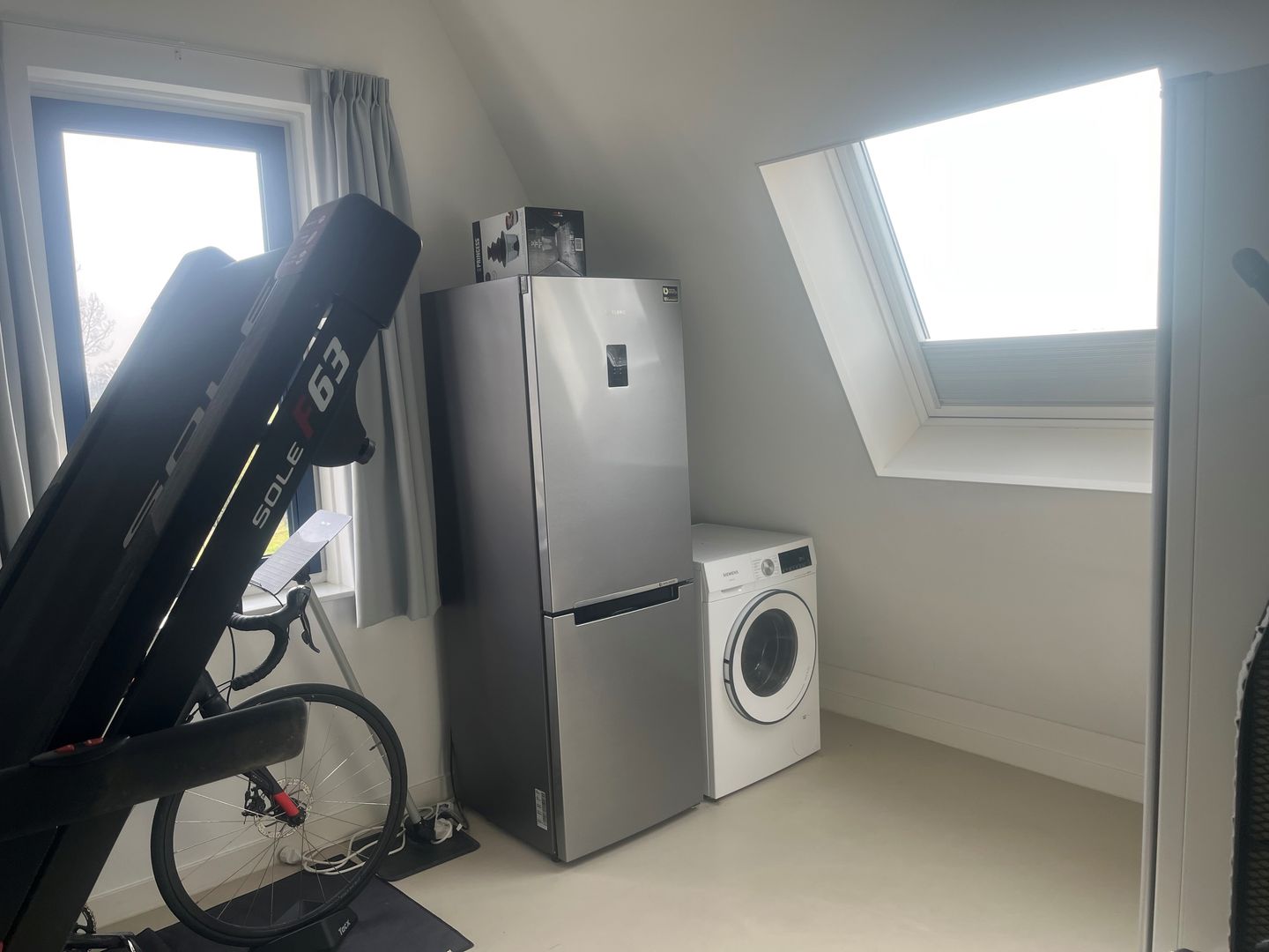Royale doorloop naar achterruimte ruimte waarin de was//droogcombinatie en een grote vriezer staan opgesteld